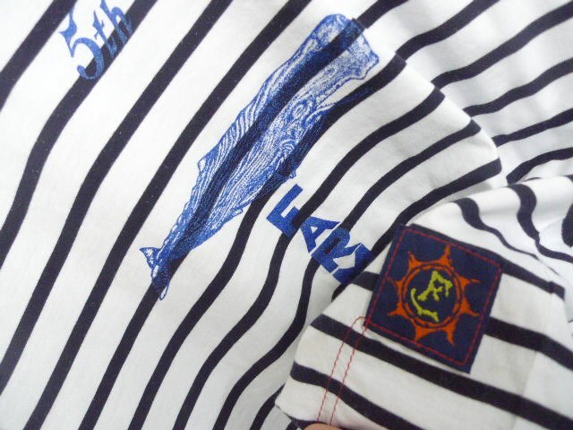 ◆ ◆TRUSS ボディ FARMs ファーマーズ 5周年 限定 くじらプリント ボーダー Tシャツ ネイビー サイズL