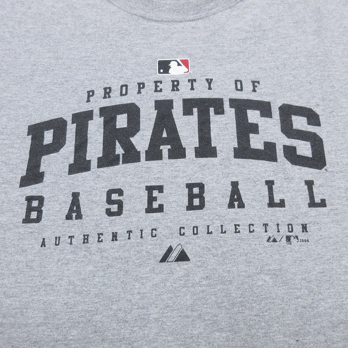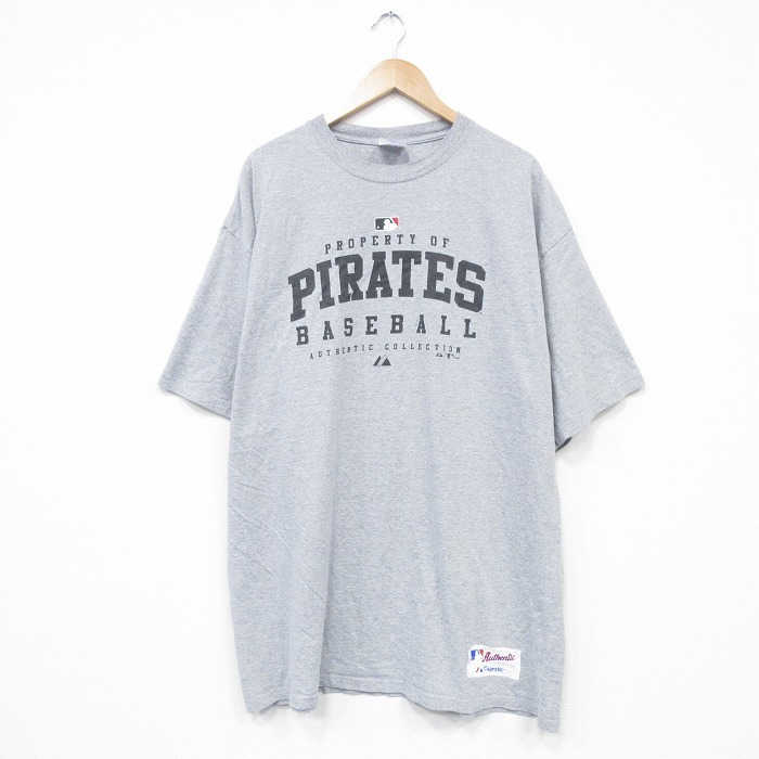 【商品名】 XL★古着 マジェスティック 半袖 ビンテージ Tシャツ メンズ 00年代 00s MLB ピッツバーグパイレーツ 大きいサイズ ロング丈 クルーネック グレー 霜降り