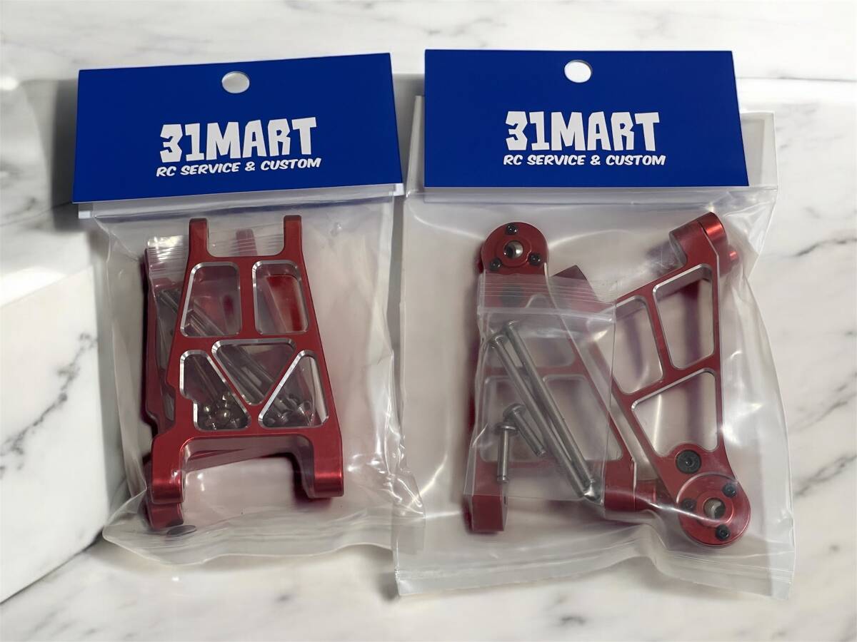 タミヤ ホットショット、スーパーホットショット等のアルミ ロアアーム フロント/リヤ 1台分 前後セット です。
