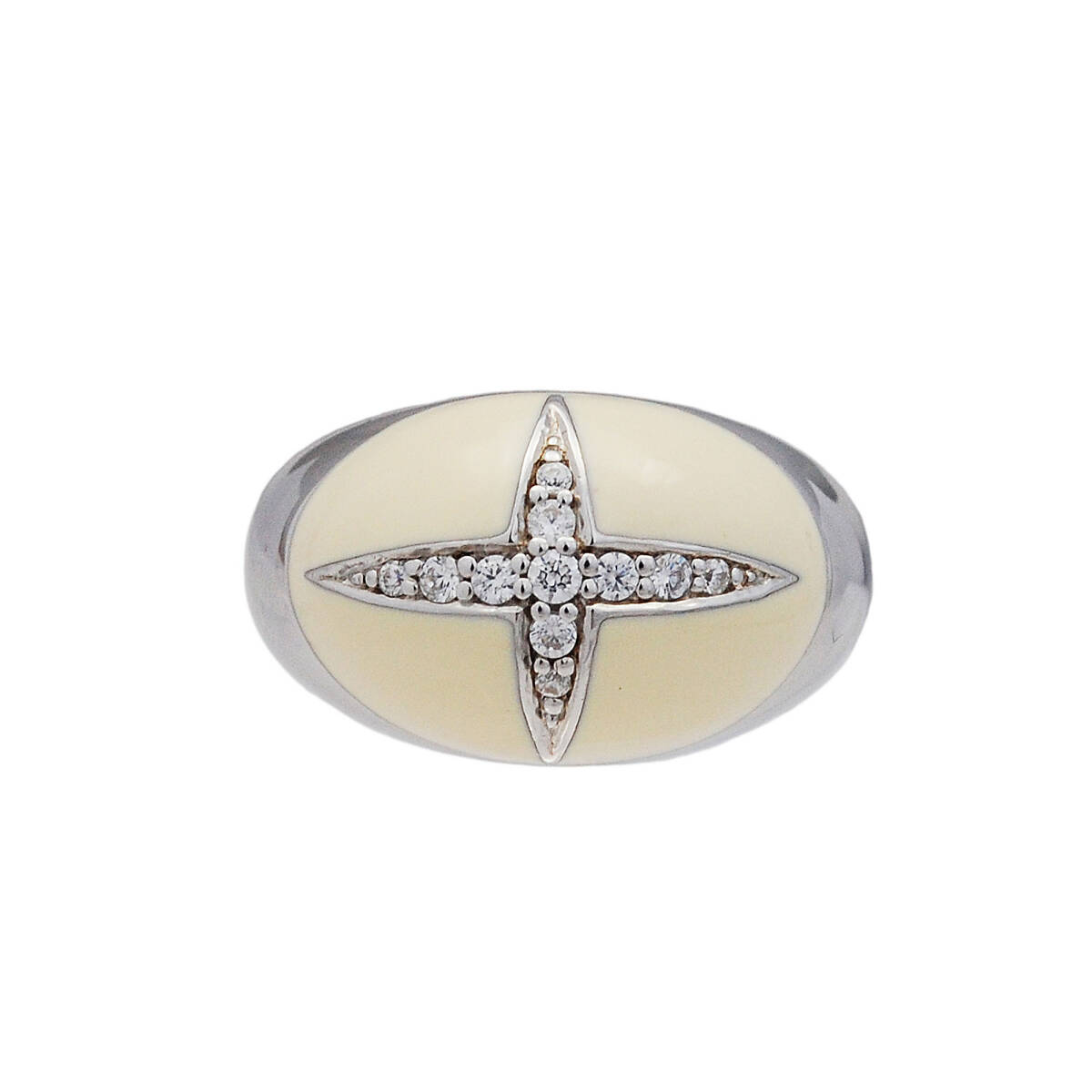 12号 ベージュエナメルジルコニア925シルバーロジウムメッキリング925刻印あり GF-18824W