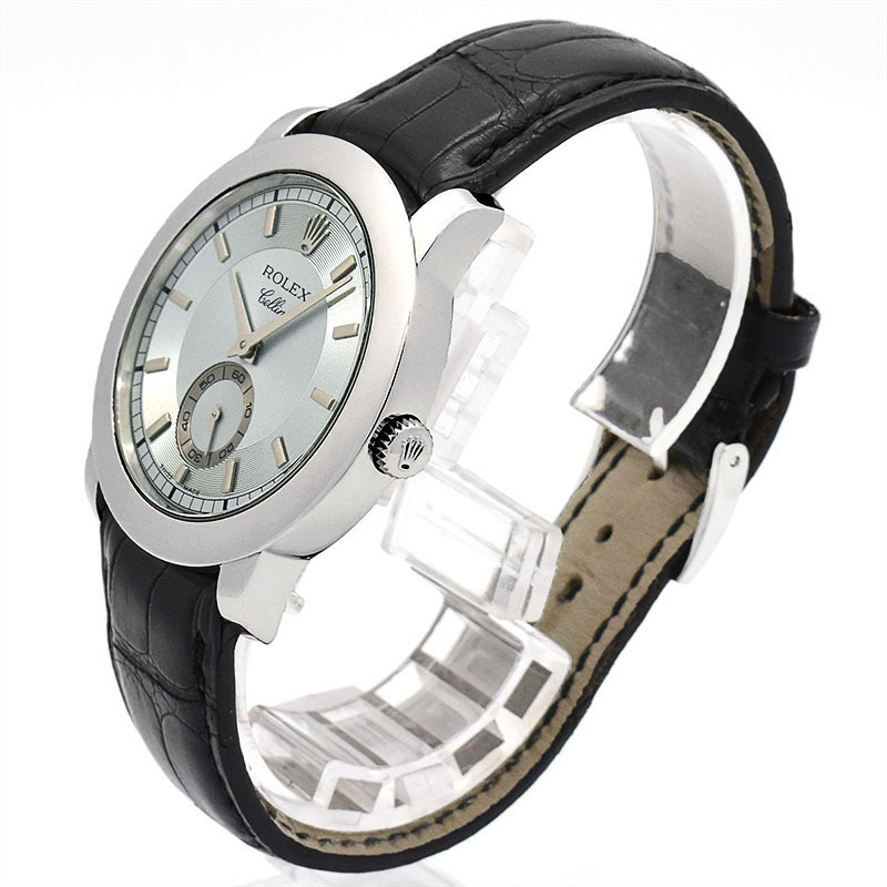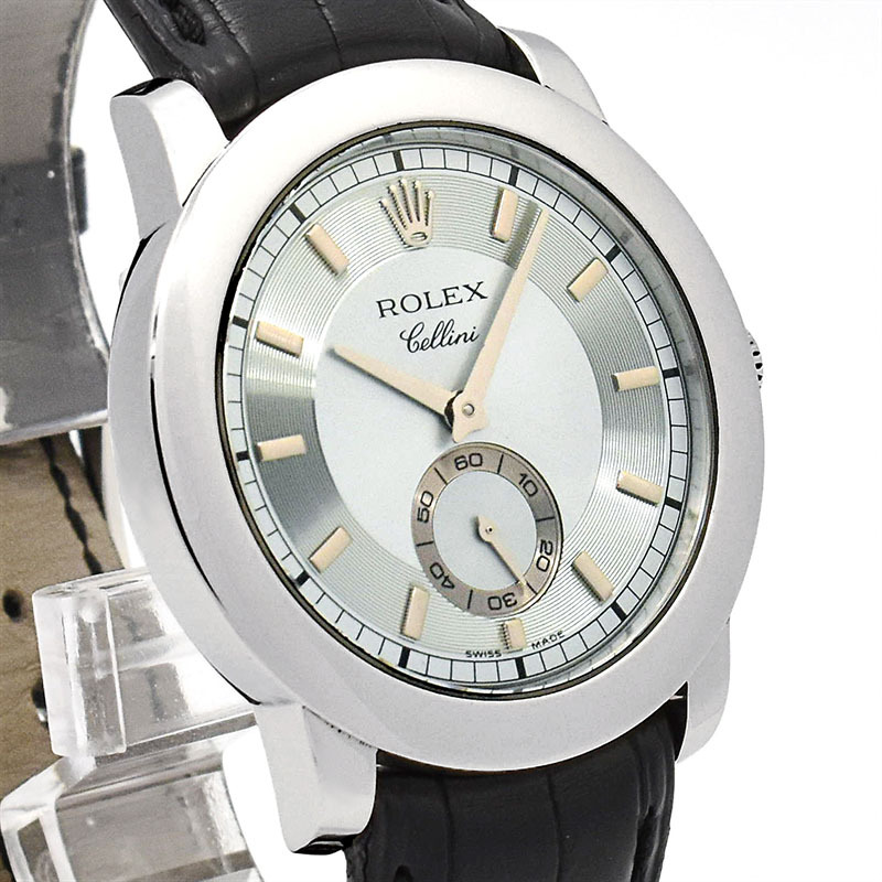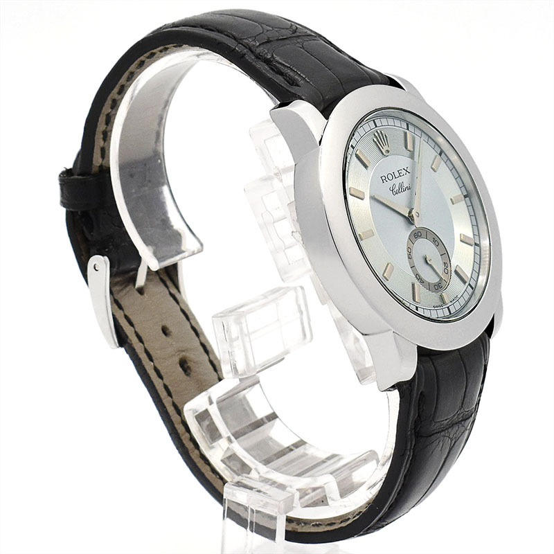 店長メモ | 38mmのプラチナケースに手巻きムーブメントを搭載し、文字盤にはプラチナモデルのみに使用されるアイスブルーを採用しています。 |