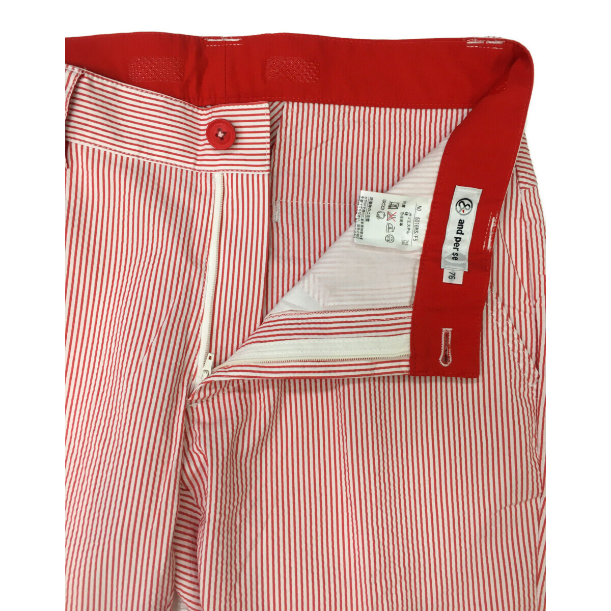 coco 中古【値下げ】 アンパスィ and per se メンズ パンツ 76cm 赤×白 サッカー生地 ストライプ レターパックプラス発送可 91387