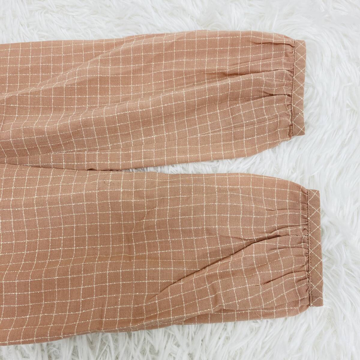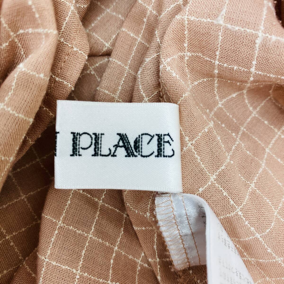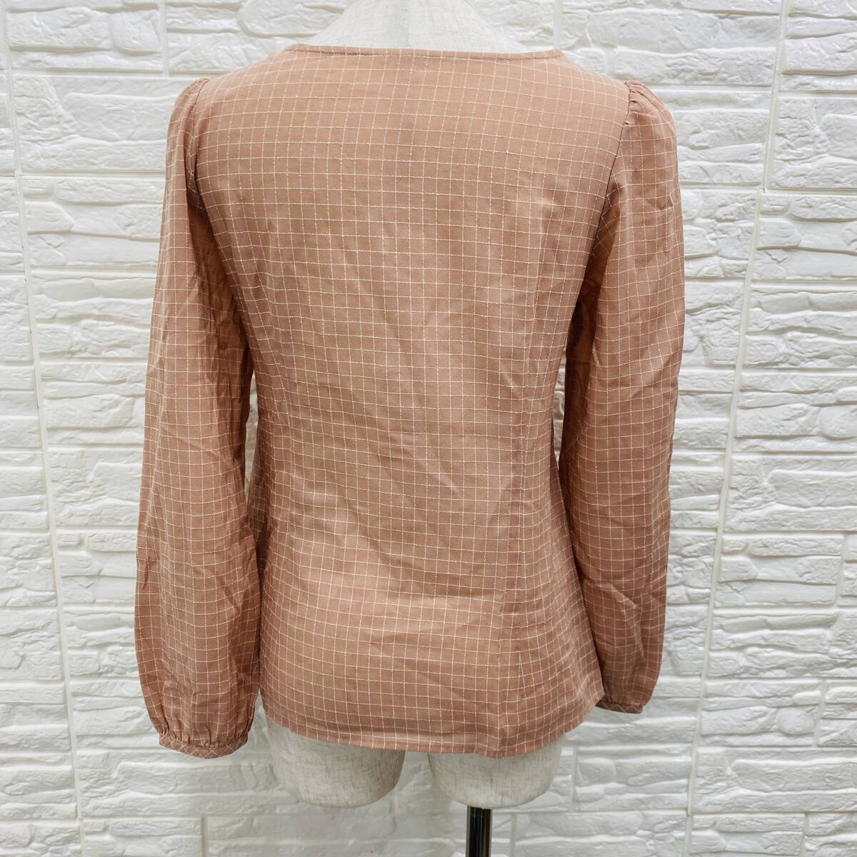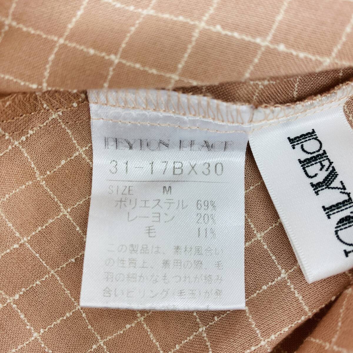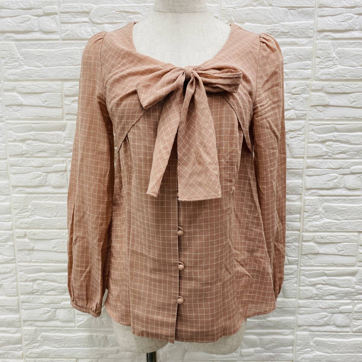 【576】PAYTON PLACE ペイトンプレイス 長袖 ブラウス ピンク チェック 前身頃リボン付き 丸首 ウール混 Mサイズ