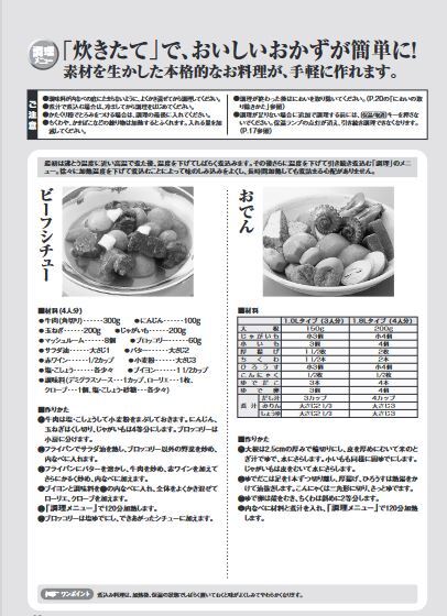 専用なべを使うことなく煮込み料理やシチューに、幅広く活躍します。