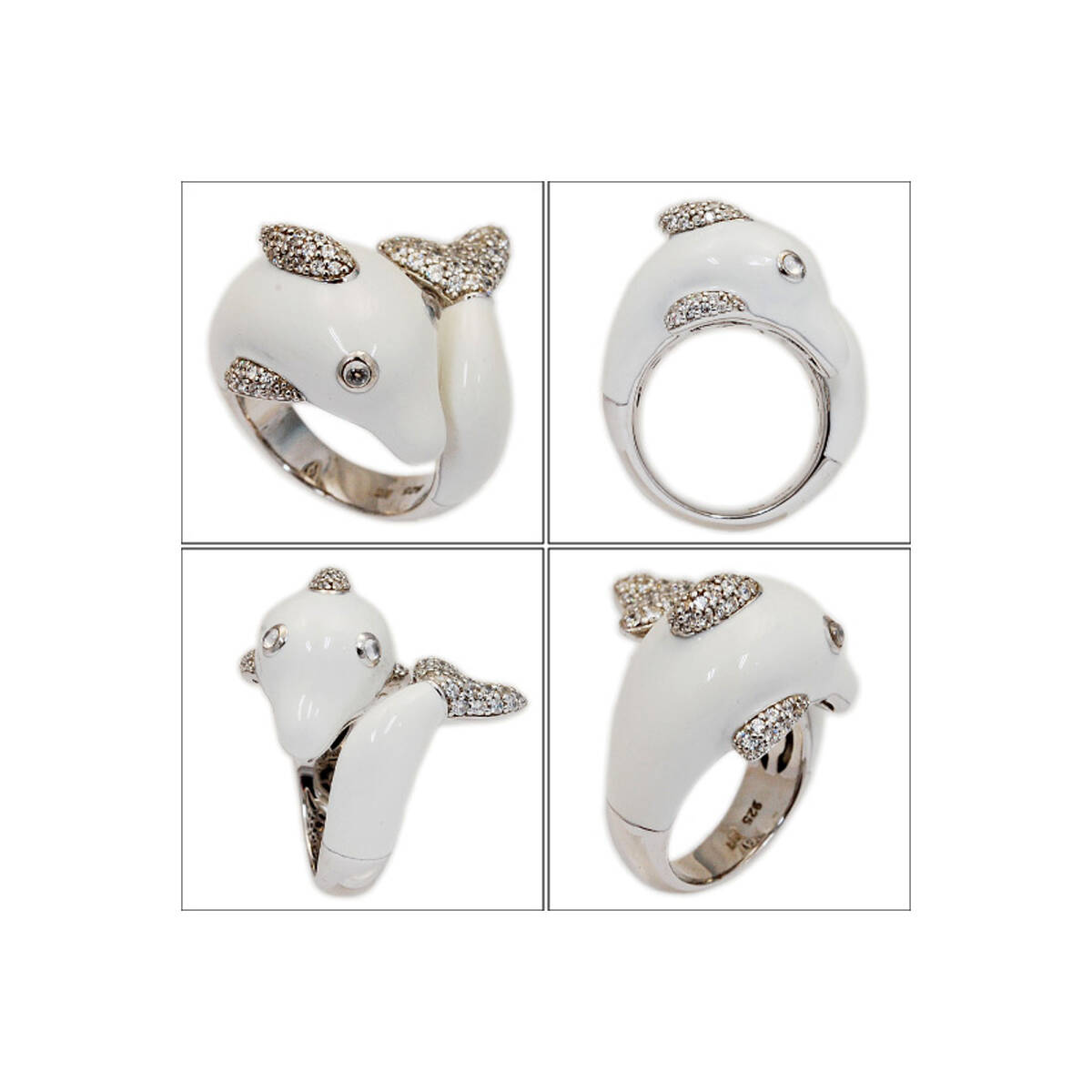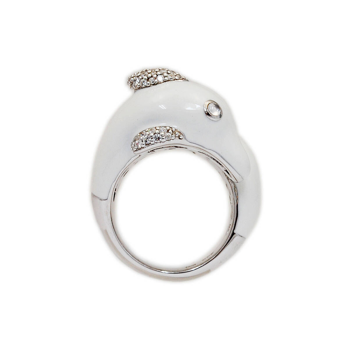 16号 ドルフィンホワイトエナメルジルコニア925シルバーリング GF-19888WT