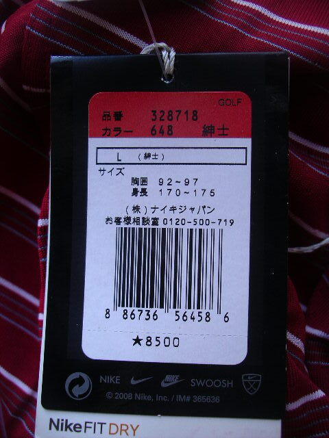 未使用品★タグ付き★NIKE GOLF★NIKE FIT DRY 半袖ポロシャツ★Lサイズ★RED & WHITE ボーダー!
