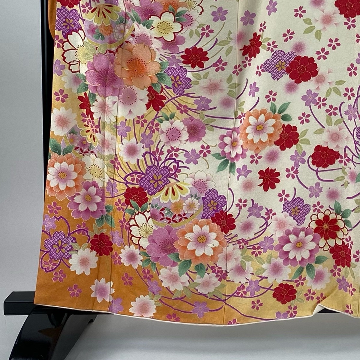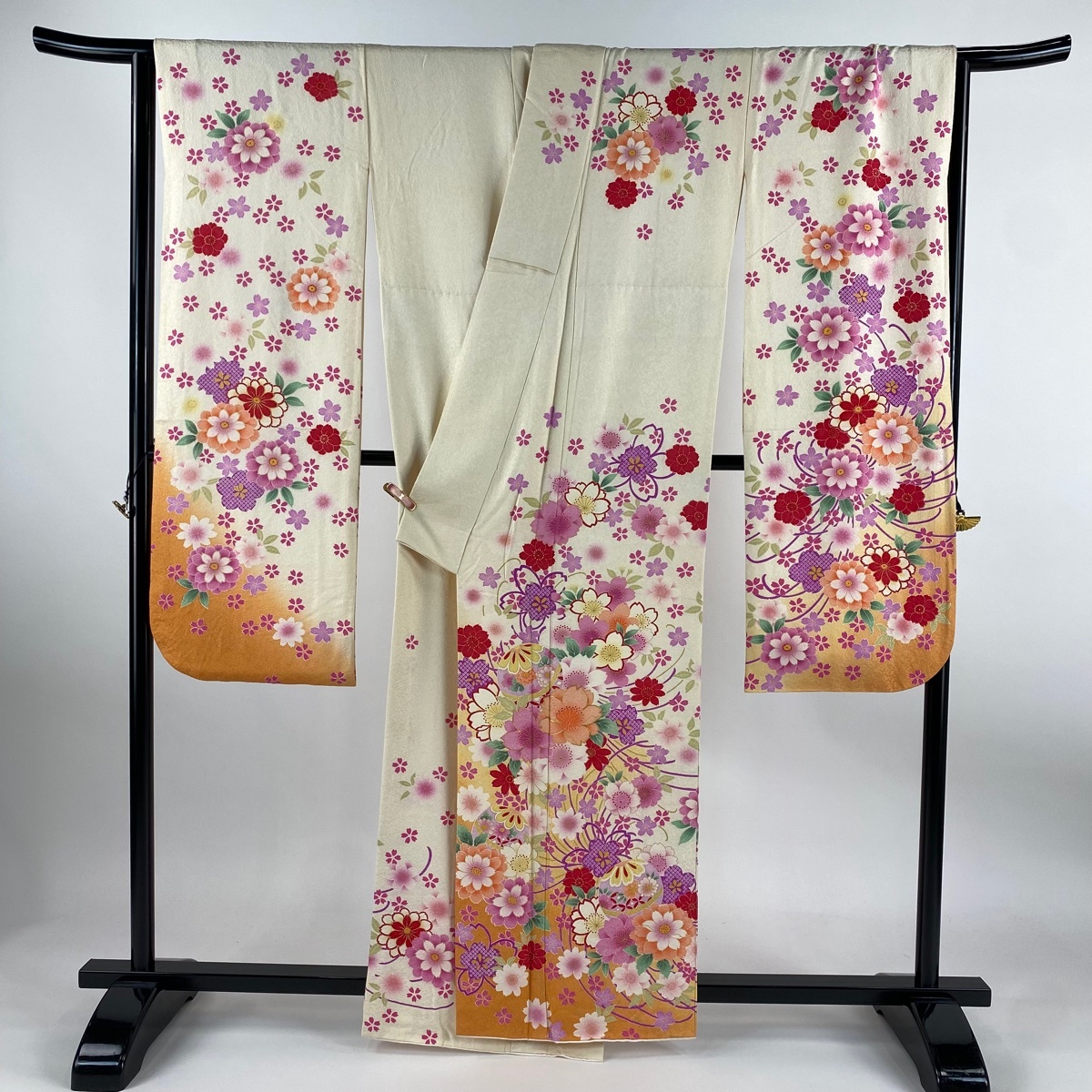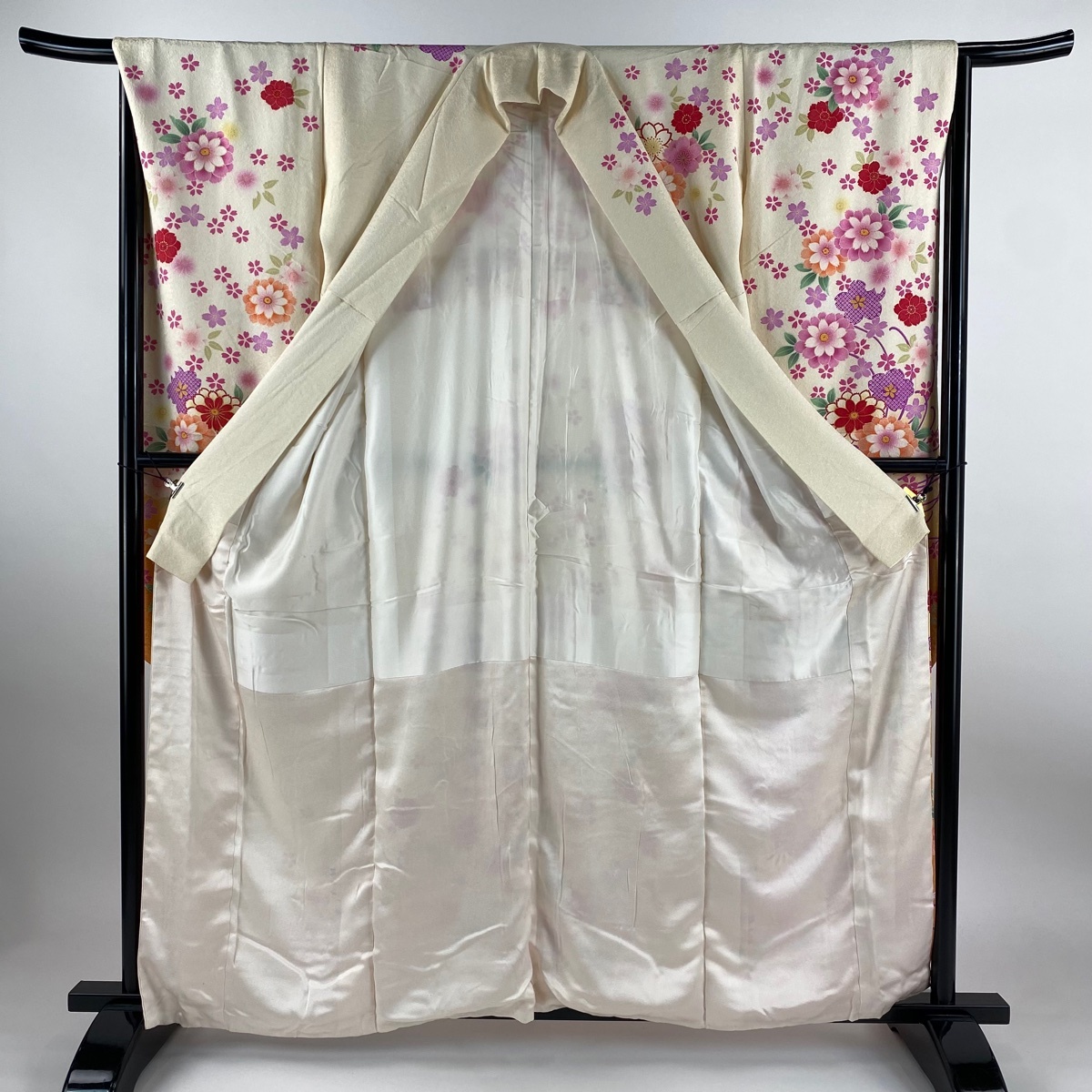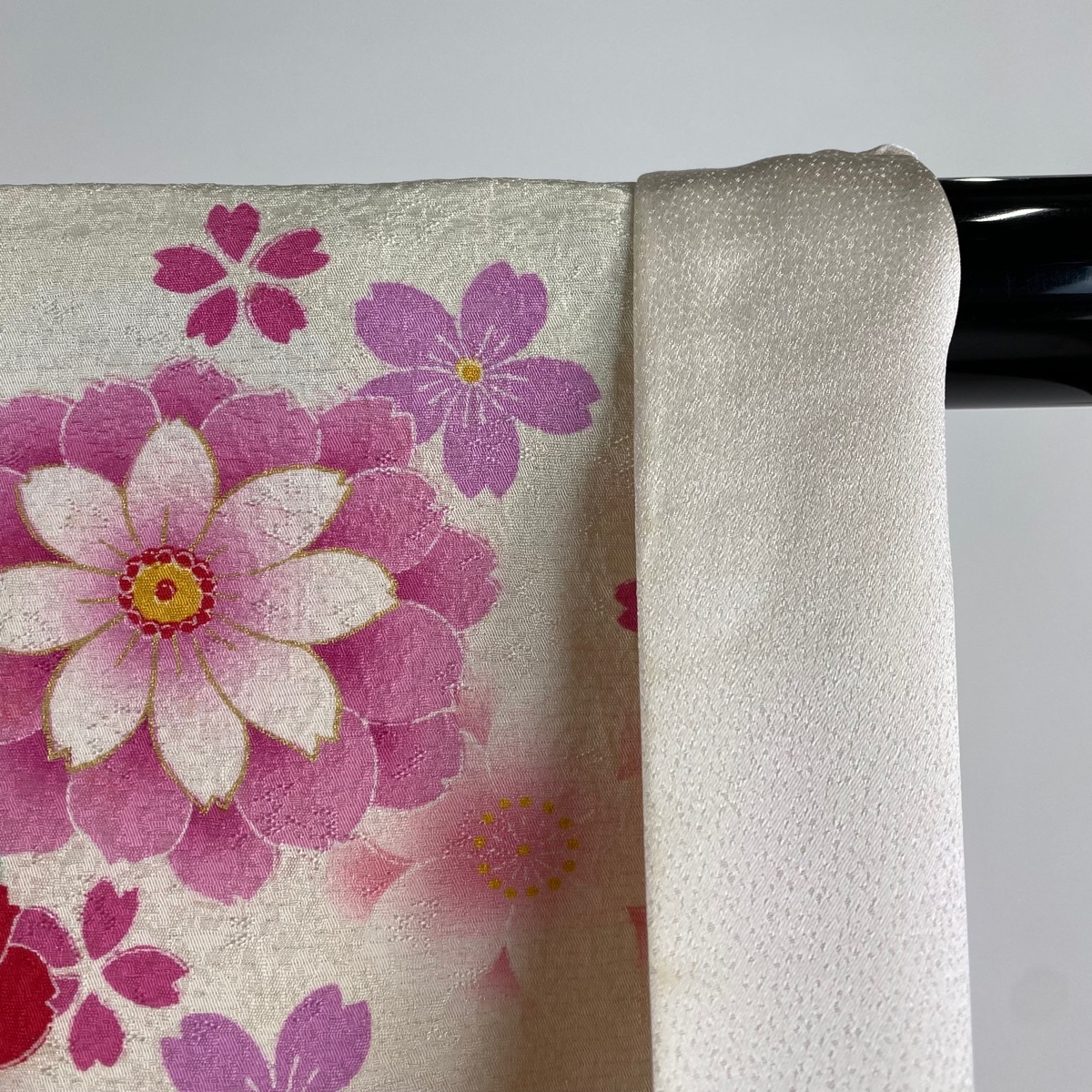 振袖 逸品 桜 鞠 銀通し 金彩 クリーム 袷 身丈160 裄丈65 M 正絹 【中古】 |
