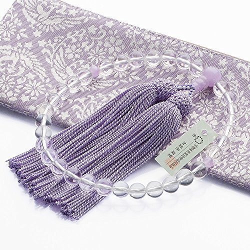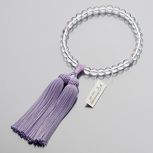 送料無料! 正絹頭付房 女性用 本水晶 すべての宗派で使える 8mm玉 京念珠 証明書付 数珠袋付き 滝田商店 数珠 仏壇屋 紫