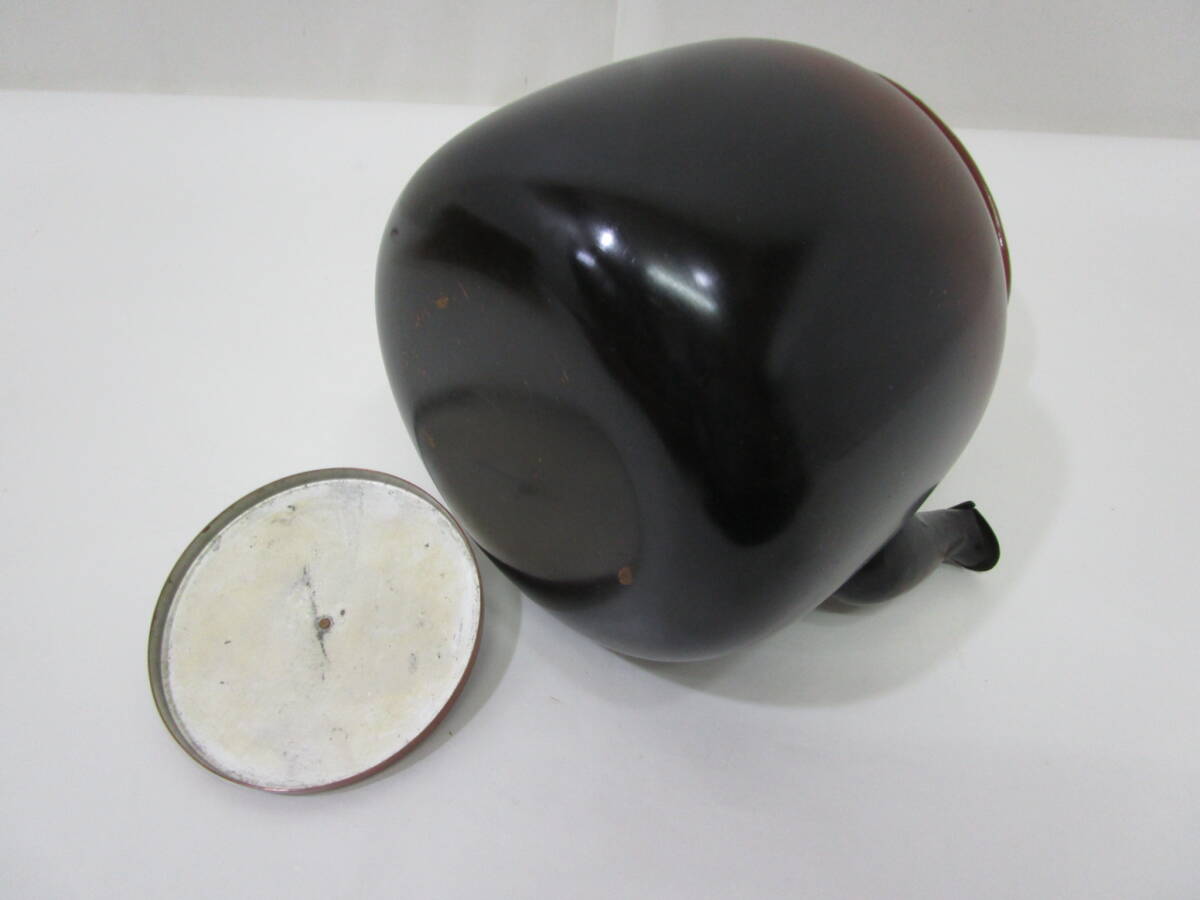 中古茶道具!  銅製 水次「裏千家用」腰黒 水注薬缶 (口蓋付)です。サイズ:胴直径16.5cm×高さ15cm (把手高24cm)外面に凹みは有りません。内側は錫引です。多少使用に因る劣化有り。御使用には問題有りません。 紙箱は経年ヤケで汚れが有ります。 どうぞ宜しく。