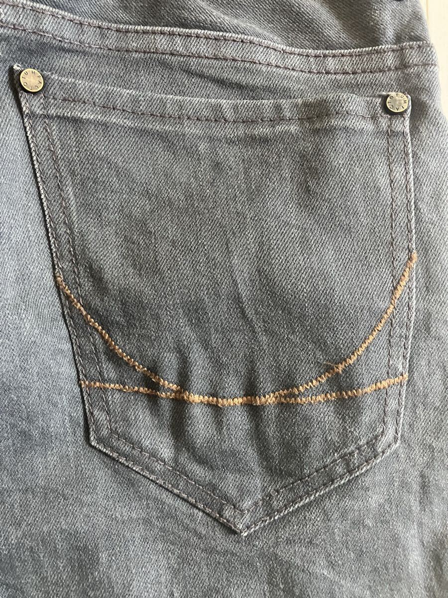 素人採寸ですが、ウエスト78cm、股上25cm、ワタリ23cm、股下72cm、裾幅17.5cmです。