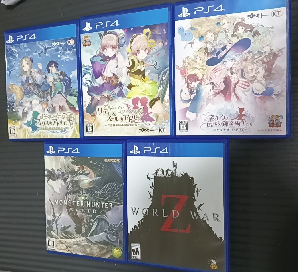 この度は数ある商品の中から、ご注目して頂きましてありがとうございます。今回の出品内容はPS4 ps5 アトリエ シリーズ ワールドウォーZ モンスターハンター 中古盤面傷なし まとめ 5本となります。商品は盤面には目立った傷はなく動作確認済みです。また、商品は写真の物が全てになっております。お間違いのないようにご確認のほど宜しくお願い致します。ご発送は定形外普通郵便になります。ノークレーム、ノーリターンでお願い致します。その他、質問等ありましたら、お気軽にどうぞ。それではご落札お待ちしております。