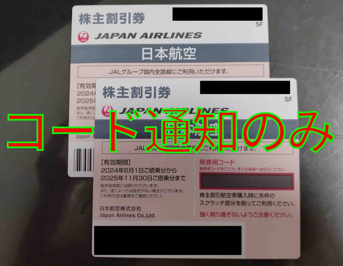 JAL 株主優待券2枚 コード通知のみ 2025年11月30日まで 日本航空 株主割引券 株主優待番号