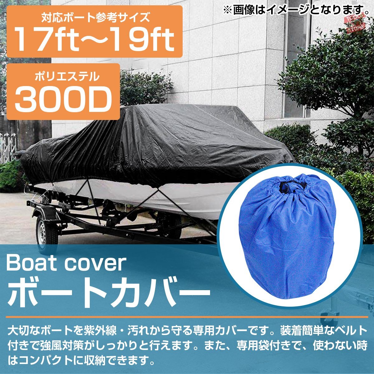 【新品即納】『17ft-19ft 青/ブルー』300D 防水 ボートカバー 全長約610cm×幅約330cm 船体 カバー アルミボート 船 ボート 保管 船舶