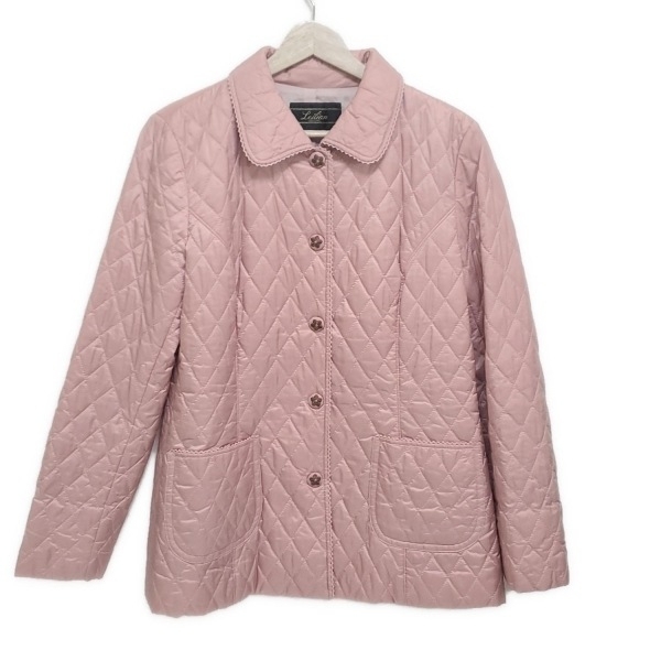 レリアン Leilian ブルゾン サイズ9 M - ピンクベージュ レディース 長袖/中綿/キルティング/フラワー(花)/秋/冬 ジャケット