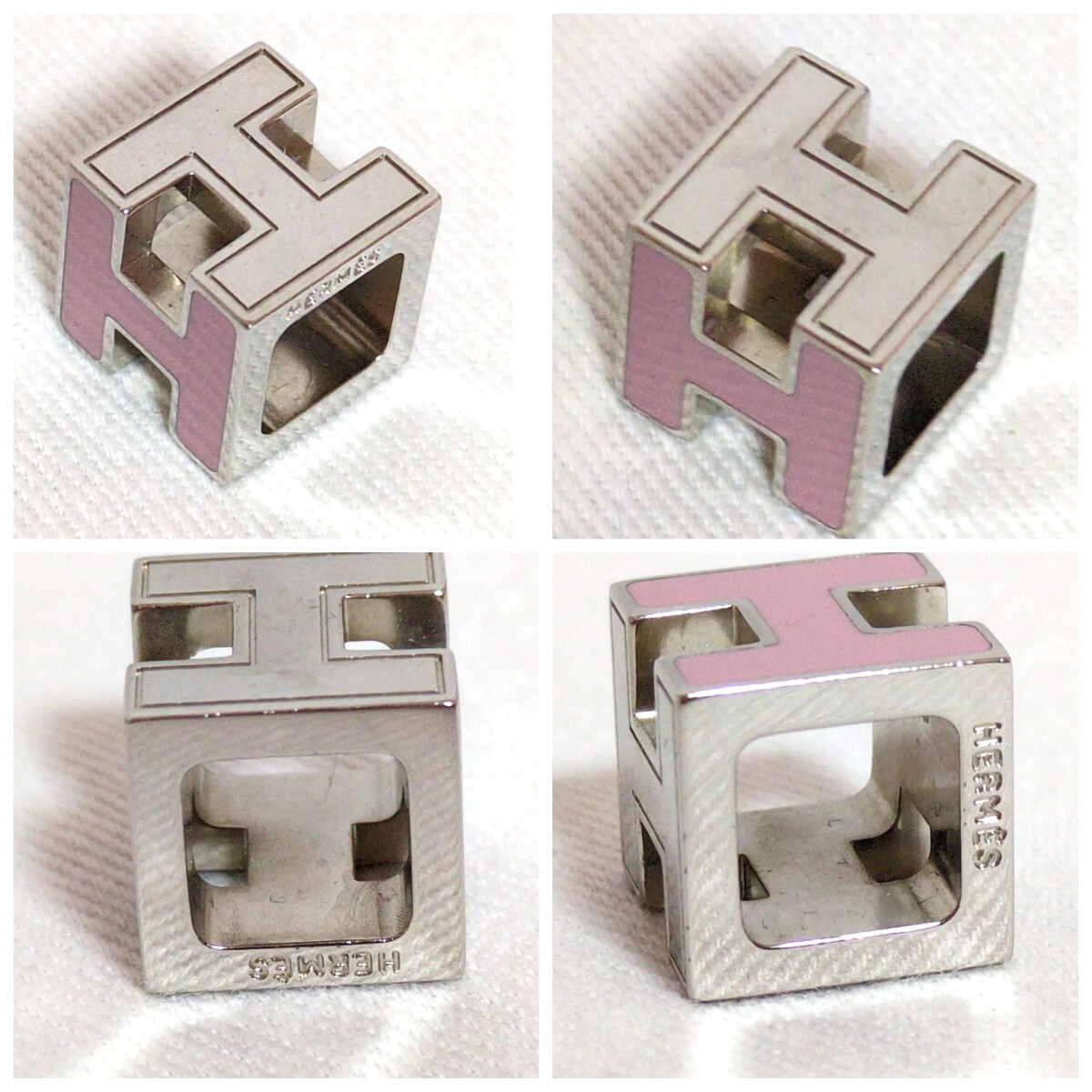 良品 HERMES エルメス シルバー系×ピンク系 カージュドアッシュ Hキューブ ペンダントトップ チャームでございます☆彡 |