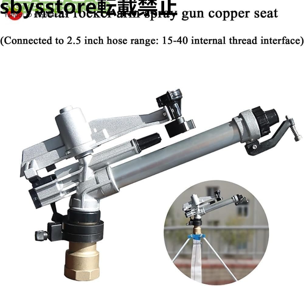製品説明高効率の節水灌漑により、人件費を削減し、農業灌漑システム用の大きなレインガン灌漑スプリンクラーヘッドの収量を増加させます。角度は30度から360度の範囲です。適用範囲が広く、節水効果にも優れています。畑野菜や苗の農業灌漑に広く使用されています。仕様名前: ロッカースプレーガンインターフェースサイズ: 2.5インチノズル径:12~18mm作動圧力: 3-6bar流量:9.5-37.9(M3/H)スプレー半径: 20-42mリンク: 雌ねじノズル傾斜角:25°回転角度:360度自由回転調整製品重量:3kg製品リスト1 * ロッカースプレーガン