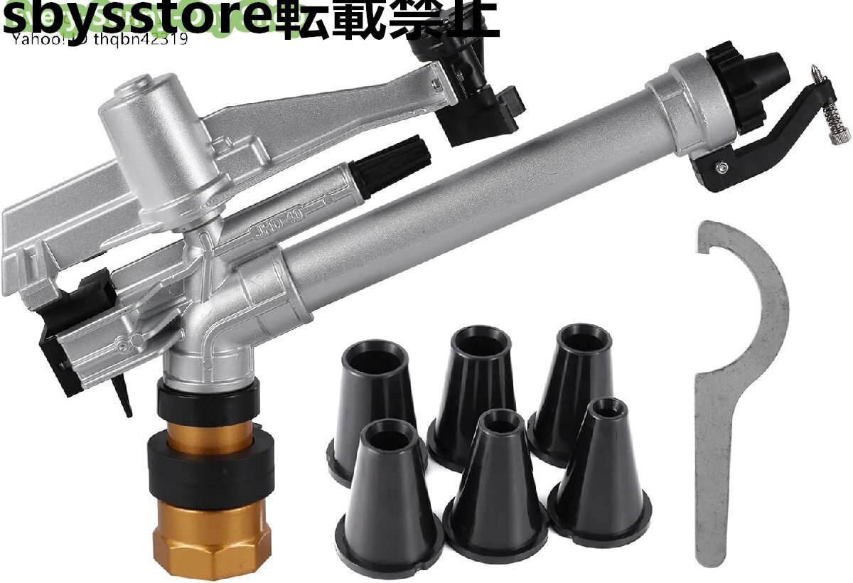360度自動灌漑レインガン 調整可能なインパクトスプリンクラー 交換用ノズル付き 20-42mの水範囲 庭の植物の芝生の水やり 芝生の灌漑用