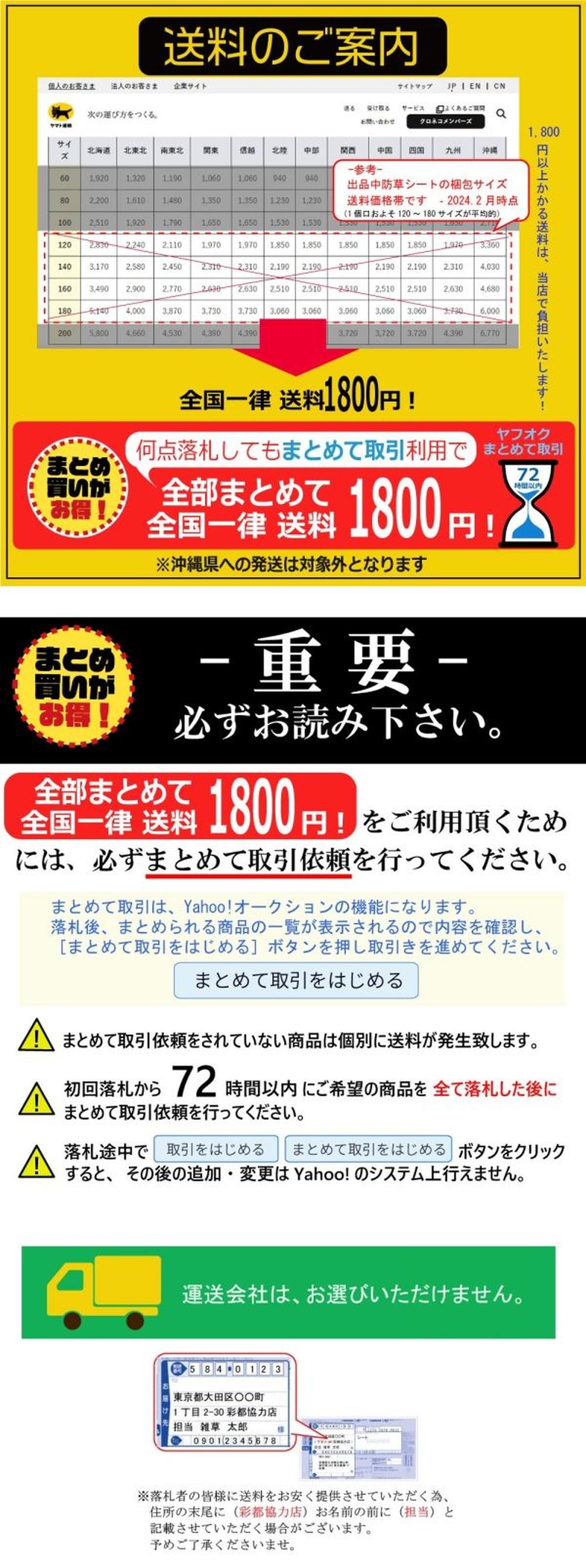 【送料】全国送料1,800円 (まとめて取引ご利用で全部まとめて送料1,800円にて発送可能)