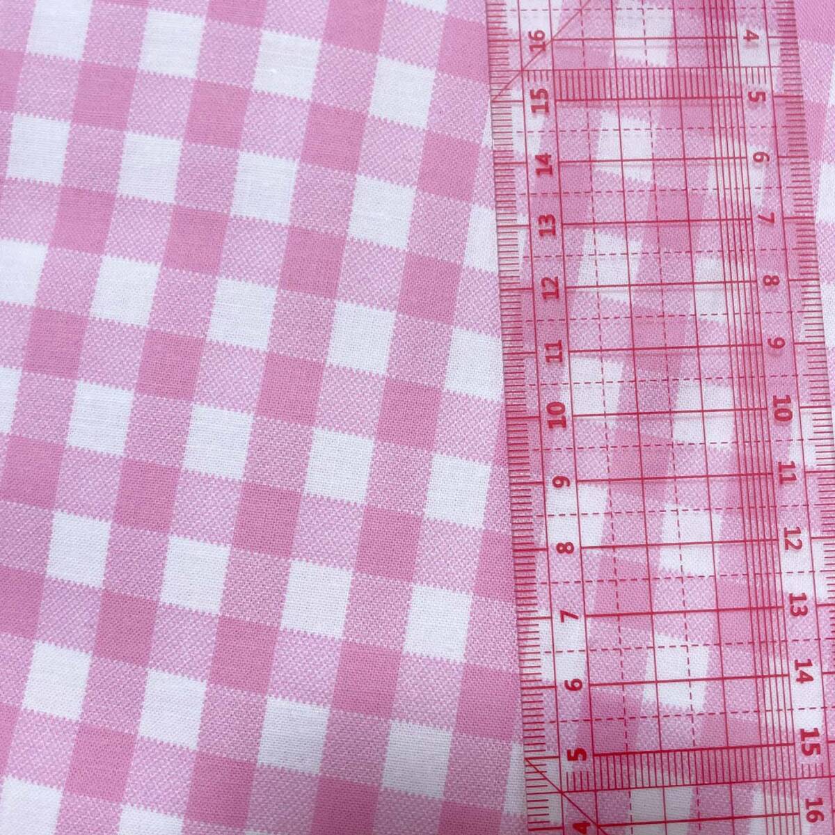 【特価】ベーシックなギンガム/チェック柄1m綿シーチング生地はぎれ布ピンク
