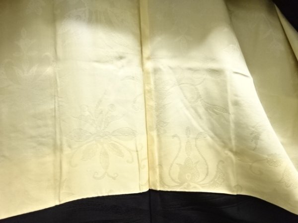 返しは42センチです。肩裏布に黄変、のりアクが有ります。左前身頃裾寄りに点アクが有ります。左袖前に薄線くすみが有ります。薄くすみが有ります。状態は大変良いです。着用可能です。採寸・検品:岩井、北河 撮影:森野