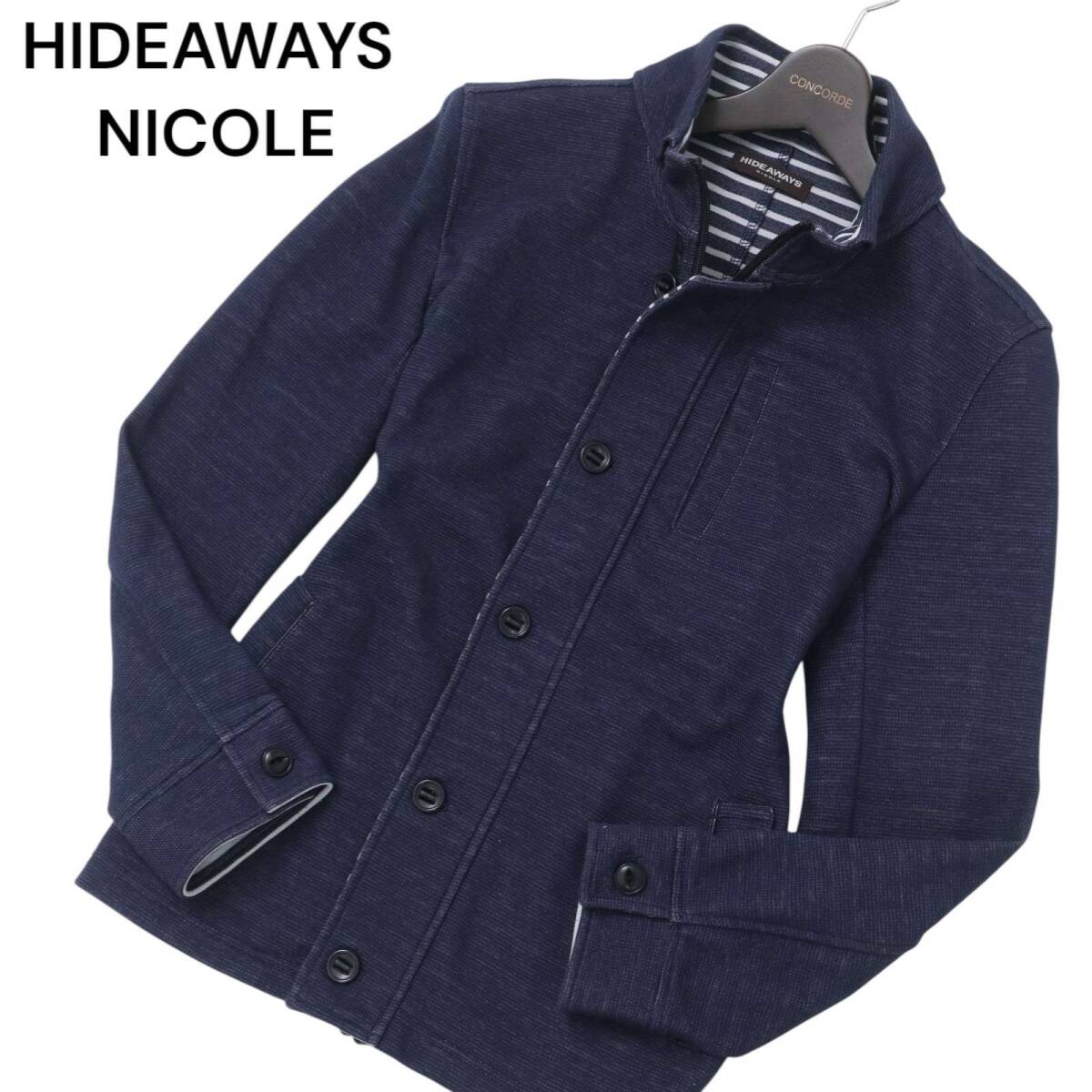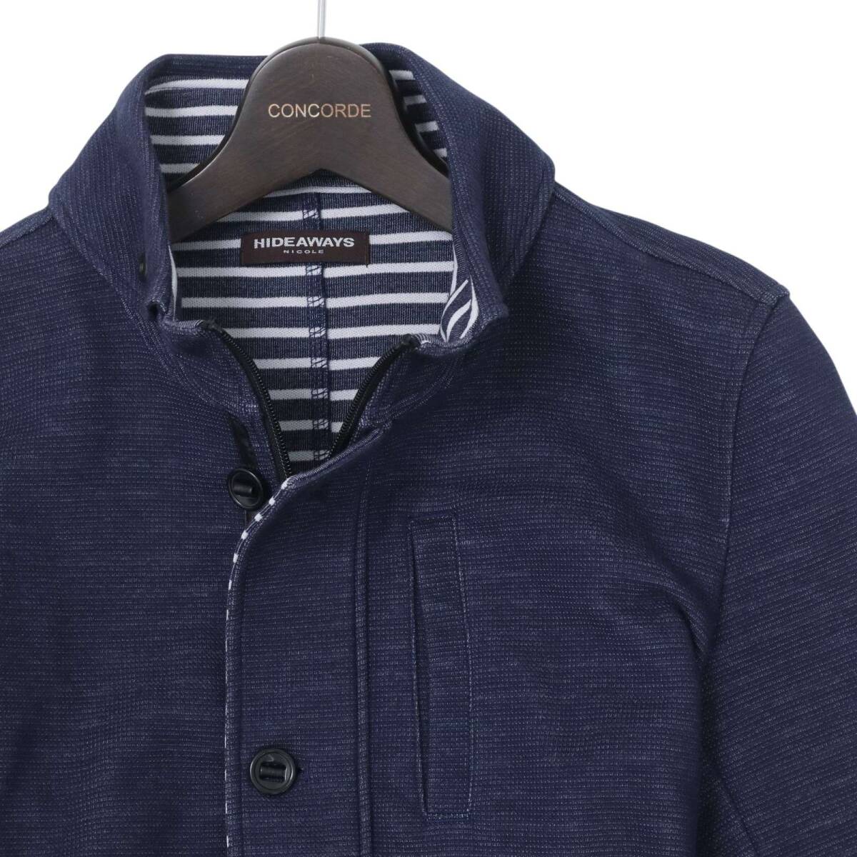 HIDEAWAYS NICOLE ハイダウェイ ニコル 通年★ 裏地 ボーダー ジップアップ ブルゾン ジャケット Sz.46 メンズ ネイビー