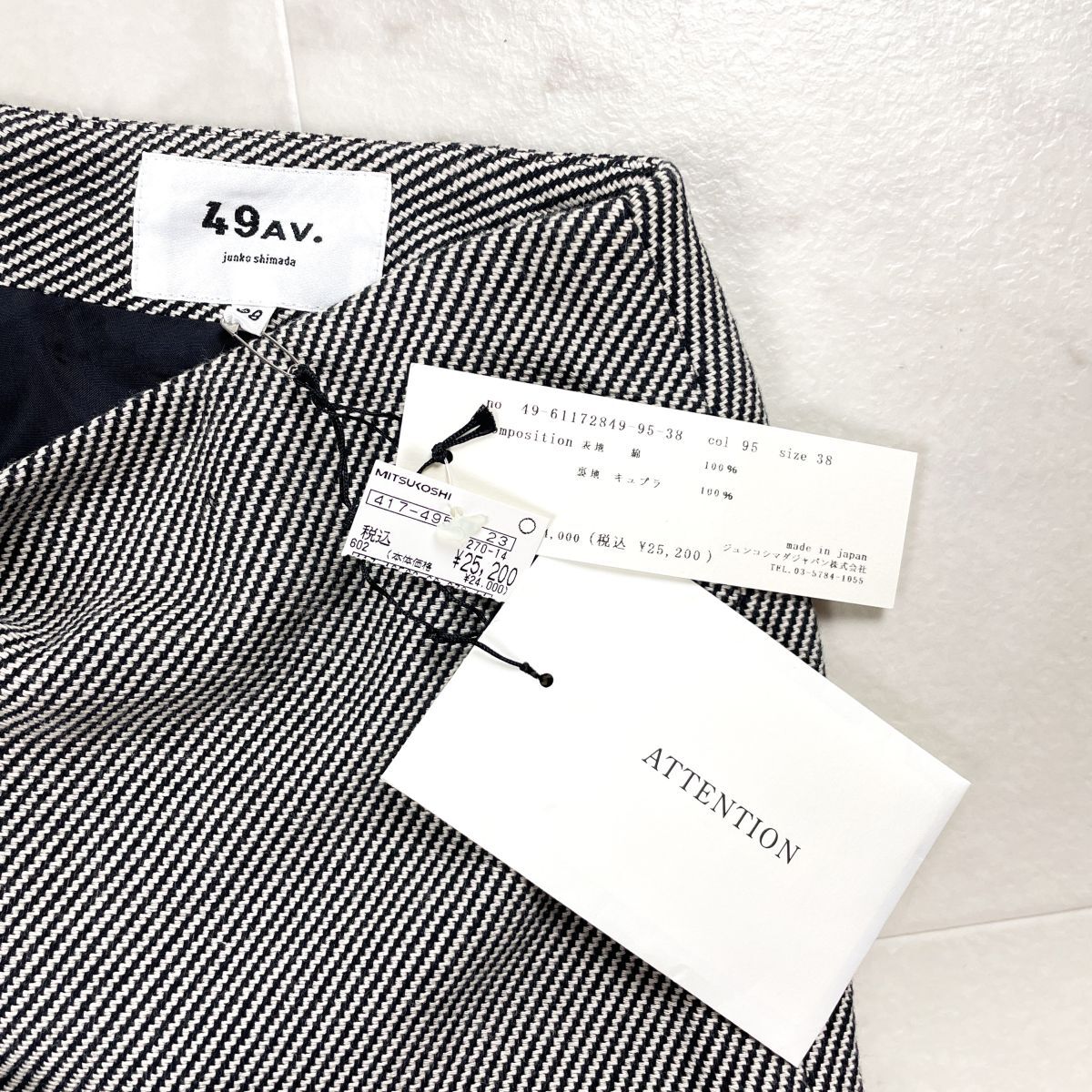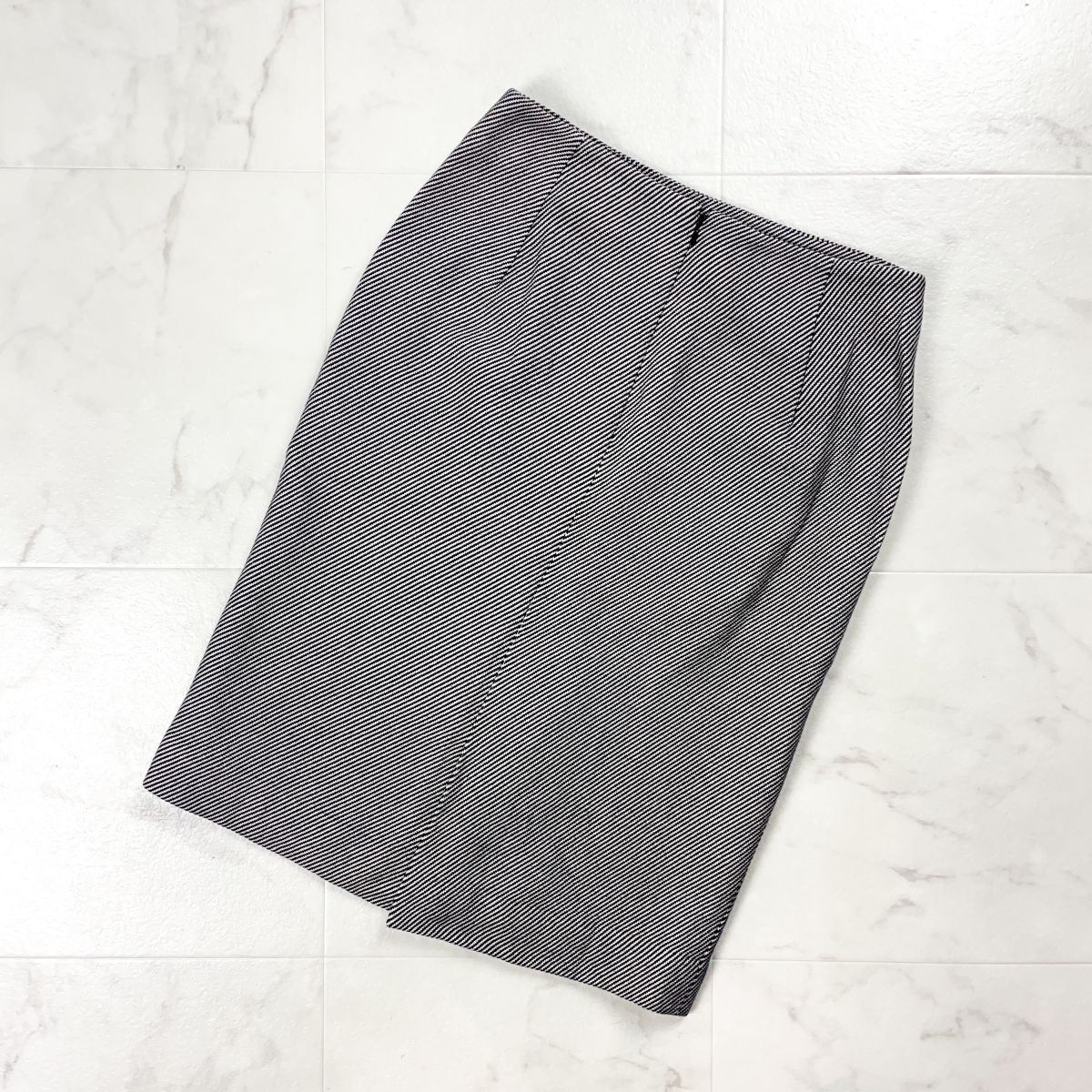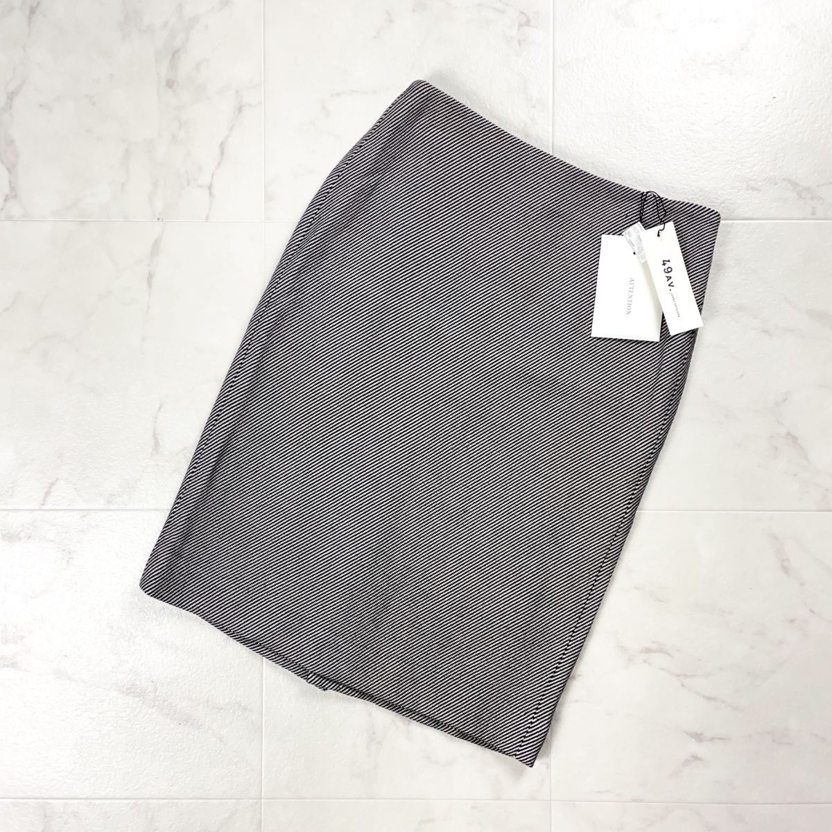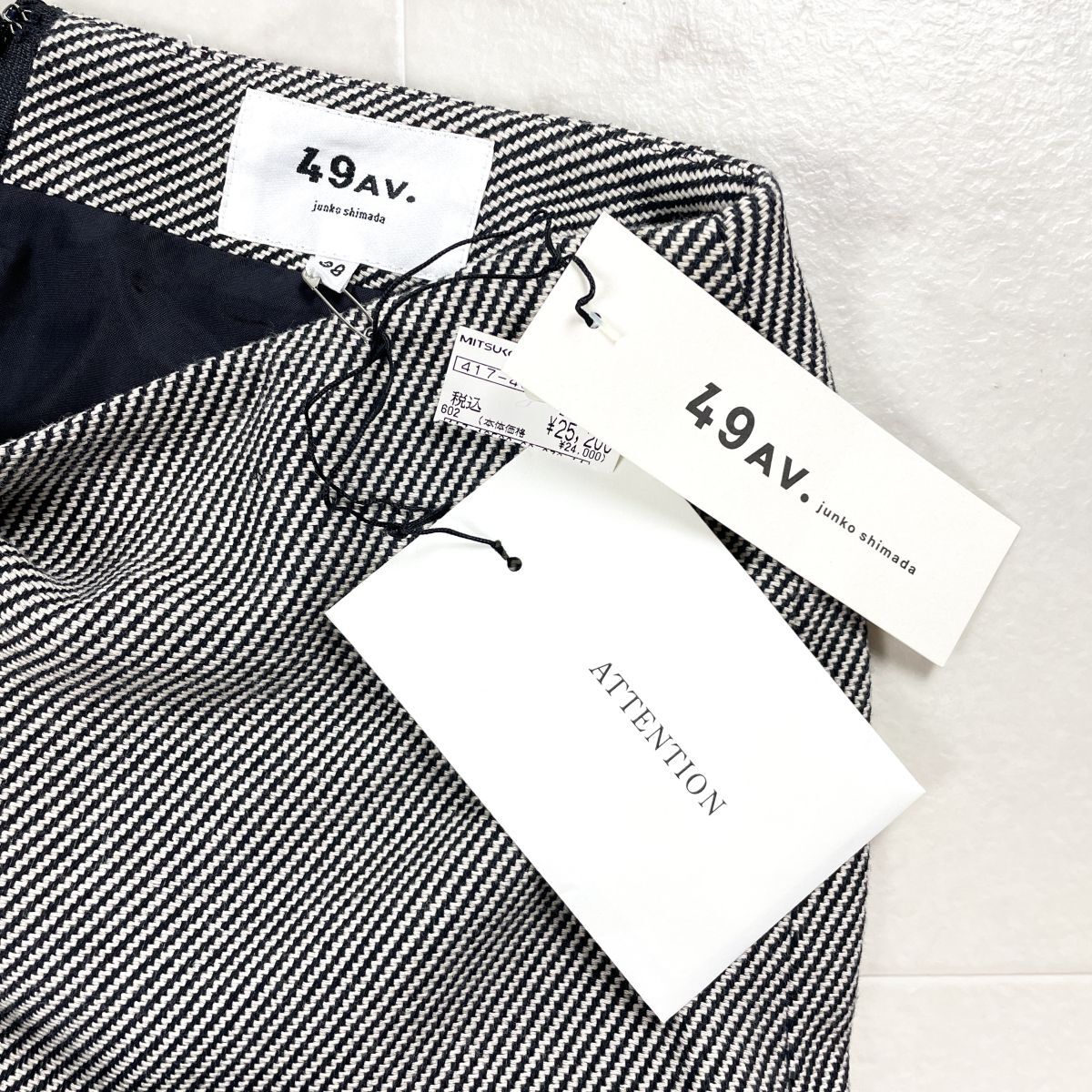 新品未使用タグ付 49AV JUNKO SHIMADA ジュンコシマダ ストライプツイードタイトスカート 膝丈 黒 ブラック グレー サイズ38*FD529