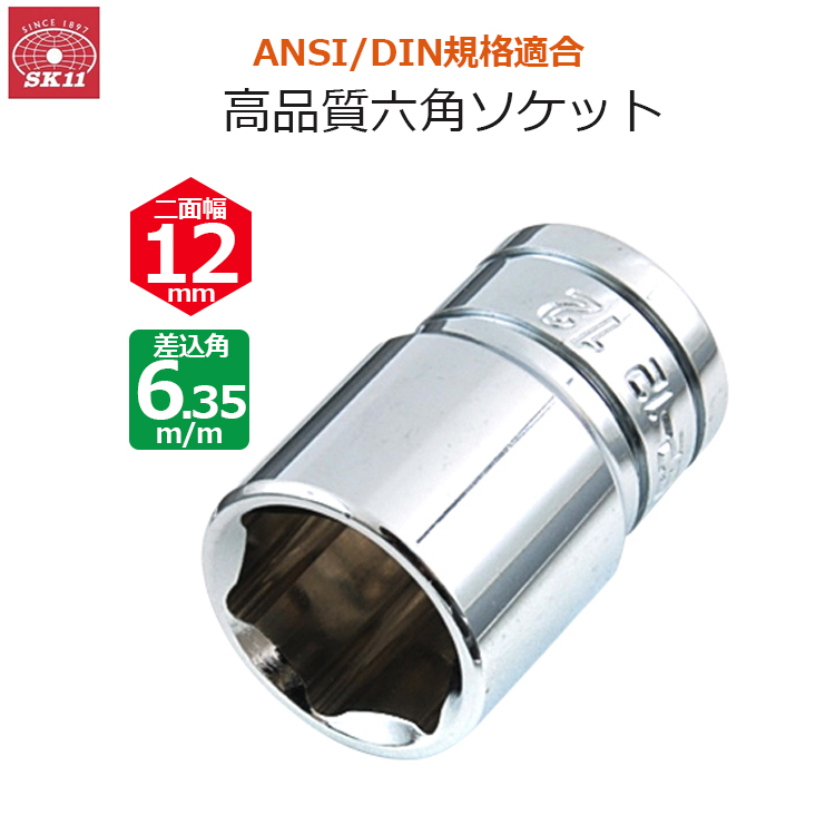 SK11 ソケット 二面幅12mm 差込角6.35m/m 1/4インチ S2-12