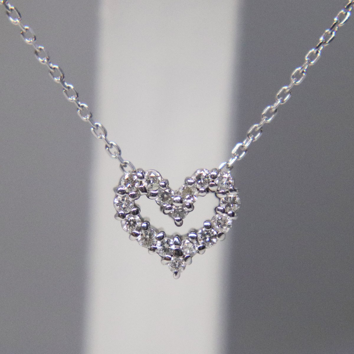 ジュエリーマキ PWG9 ハートモチーフ ダイヤモンド ネックレス 0.35ct 重量約3.2g ネック最長約40cm diamond 中古 美品 送料無料!!