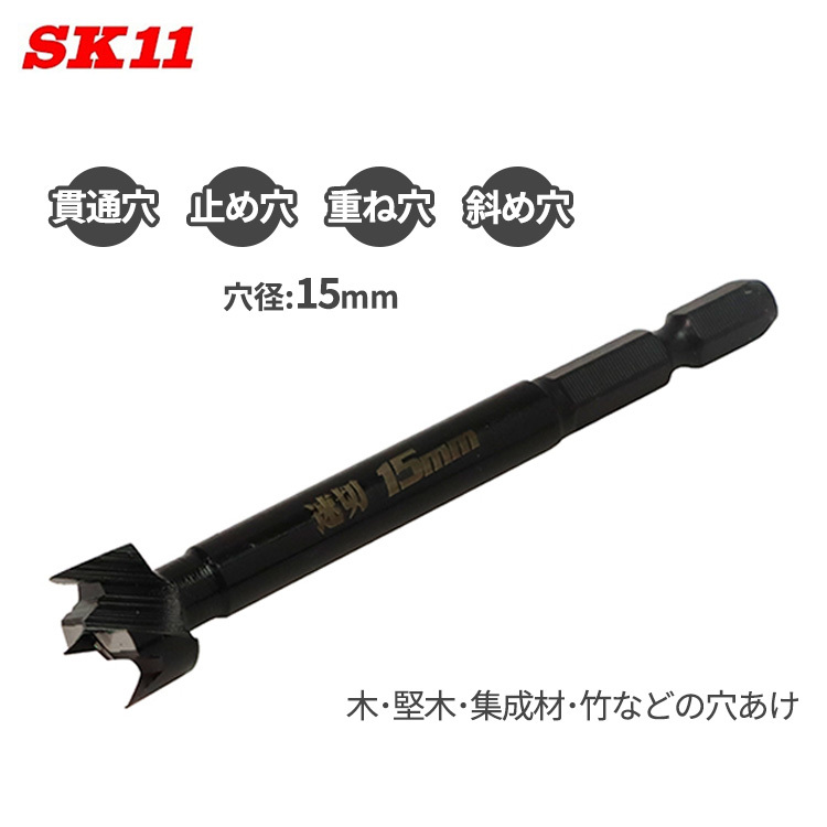 SK11 速切 木工ボアビット 六角軸 穴径15mm SSKW-15H 貫通穴 止め穴 重ね穴 斜め穴 木 木材 堅木 集成材 竹 穴あけ