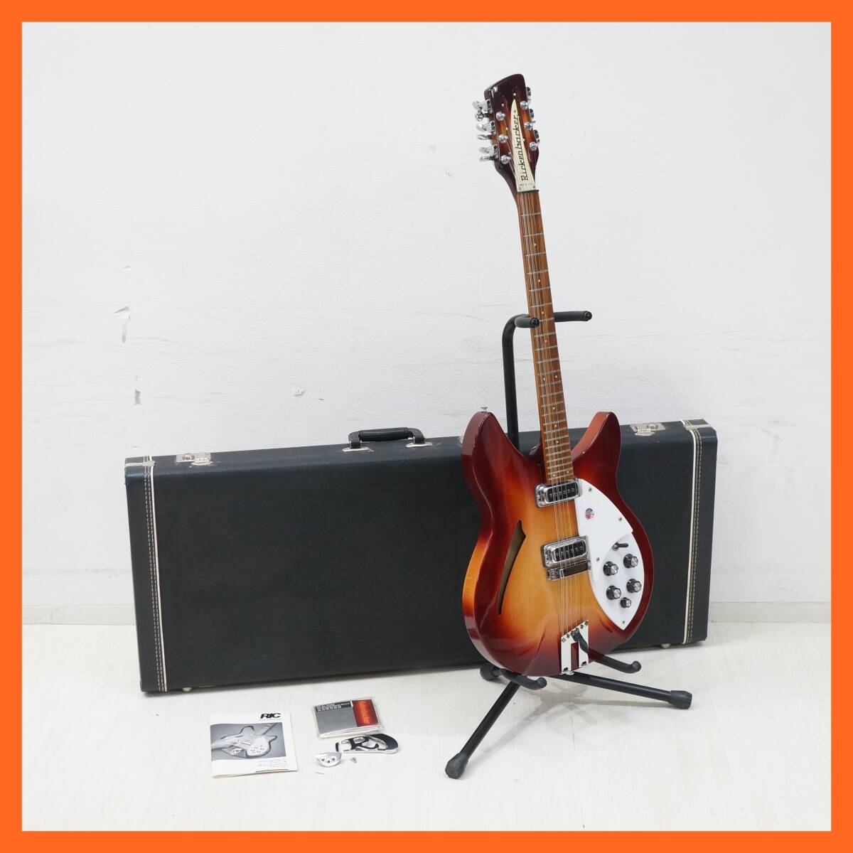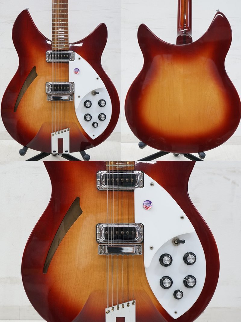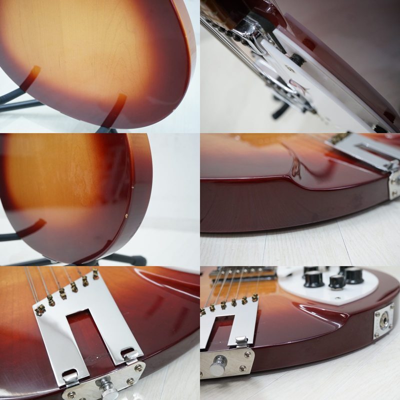 ■東ハ:【Rickenbacker/リッケンバッカー】エレキギター Model330 12Strings 12弦モデル Made in USA 全長約102㎝ ハードケース付 ★送料無料■ Rickenbacker/リッケンバッカー 「 エレキギター Model330 12Strings 12弦モデル USA製 」ハードケース付きになります。 エッジの効いたショルダーを持つ330のスタイルが 独特のトーンを奏でるリッケンバッカー12弦サウンドを持ち合わせた魅力的なモデルです。 【詳細】 ・メーカー:Rickenbacker/リッケンバッカー ・モデル:Model330 12Strings ・機種:エレキギター 【主な仕様】 ・サイズ: (約) 全長102.0 × 幅38.7 ×厚み6.2 cm ・弦高:1弦 (約) 0.2 ㎝ / 12弦 (約) 0.3 ㎝ ・ナット幅: (約) 4.2 ㎝ ・ケース (約) 高さ45.0 × 幅106.3 ×奥行10.0 cm 【コンディション】 中古のお品となります。 付属品は写真にあるものが全てです。 ※スタンドは撮影用の備品となります。 ※経年・使用に伴うシミヨゴレ・色ヤケ、くすみ・サビ、 キズ・ヘコミ、ケズレ・欠けなどが複数ございます。 Rのテールピースに割れがあるため、本体に取付ができない状態となります。 ケースの鍵の不足、シミ・着色ヨゴレ、サビなどが複数ございます。 ※音出し確認は行っておりますが、当方専門業者等ではございませんので チューニングや調整など詳しくは分かりかねます。 現状コンディションでのお取引きとなりますので、ご了承ください。 当店では、古いものを扱っておりますため、時代経過による汚れ・スレなどがございます。 新品(完全品)をお求めの方は、ご入札をお控えください。 状態につきまして、不明な点などございましたら商品説明欄の質問欄より事前にお気軽にご質問ください。 画像をよくご覧になられお客様のご納得の上、責任を負える範囲でのご入札をお願い致します。 ■商品画像について■ ご使用モニター環境などによっては、多少色合いなどが異なって見える場合がございます。 予めご了承いただけますようお願い申し上げます。 商品画像をよくご確認の上、ご参加ください。 [管理No.25080702R1] |