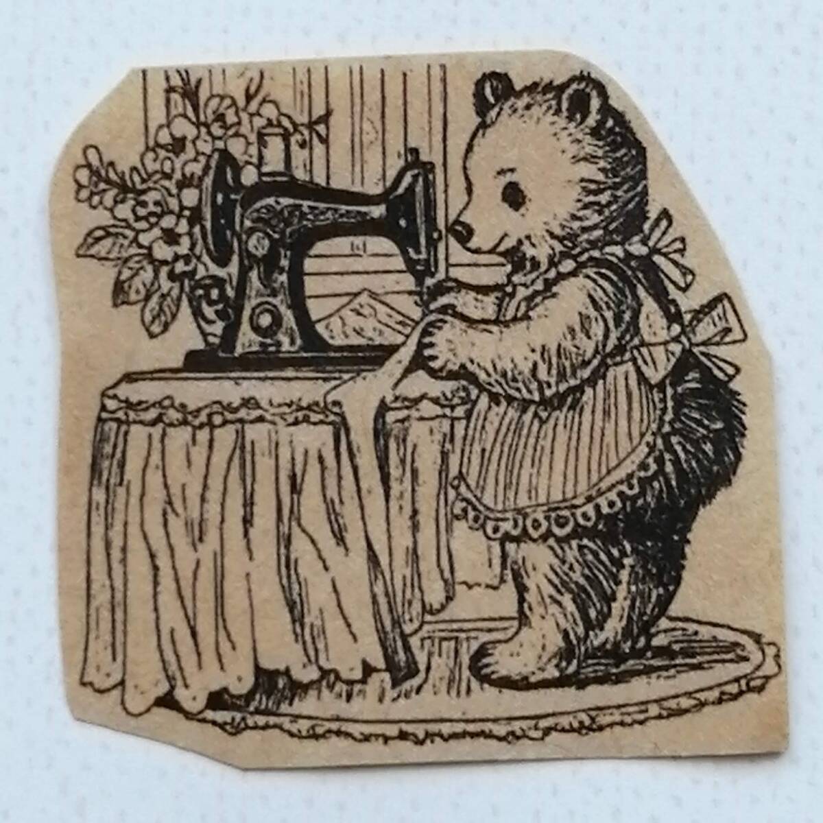1133 テディベア ミシン レース はんこ ハンコ ヴィンテージ アンティーク スタンプ イラスト ゴム印 レトロ くま クマ 熊 ハンドメイド