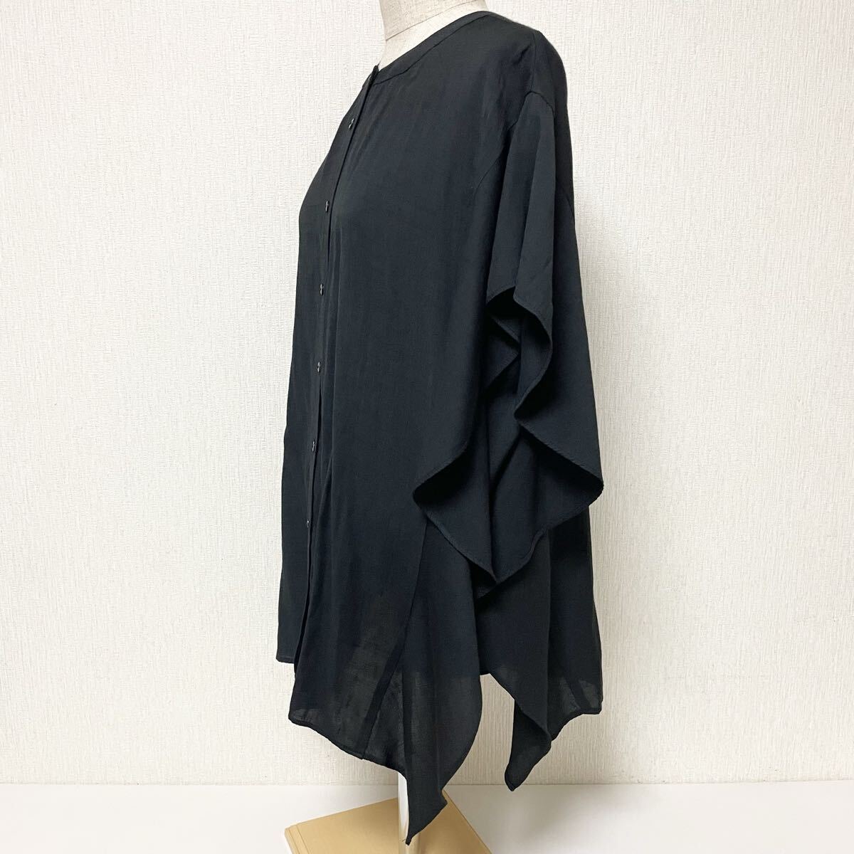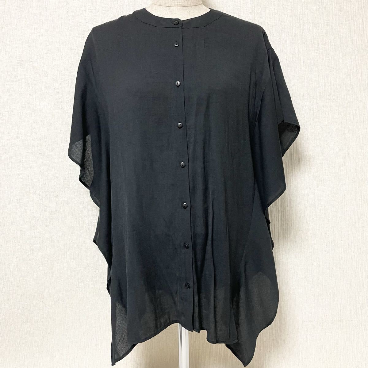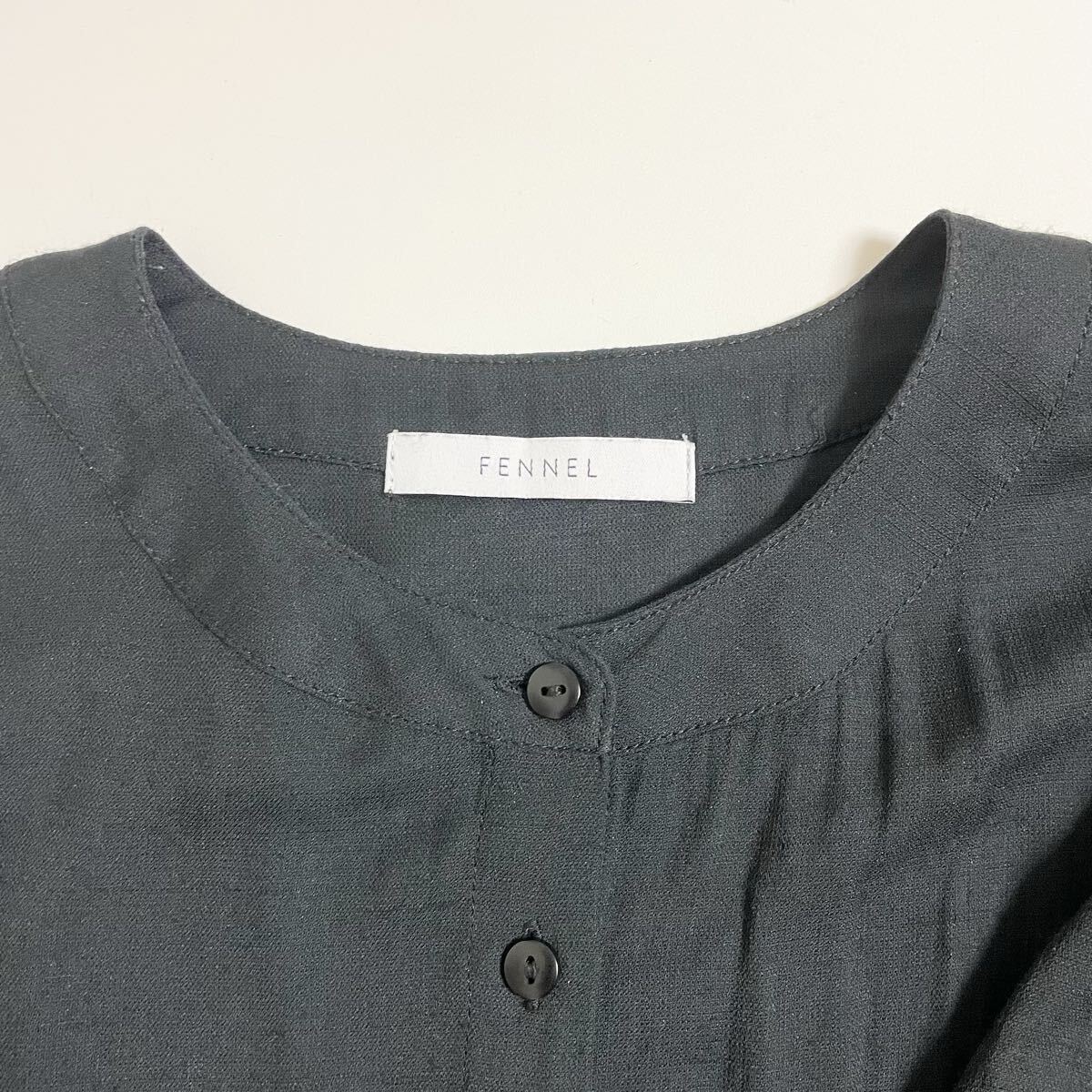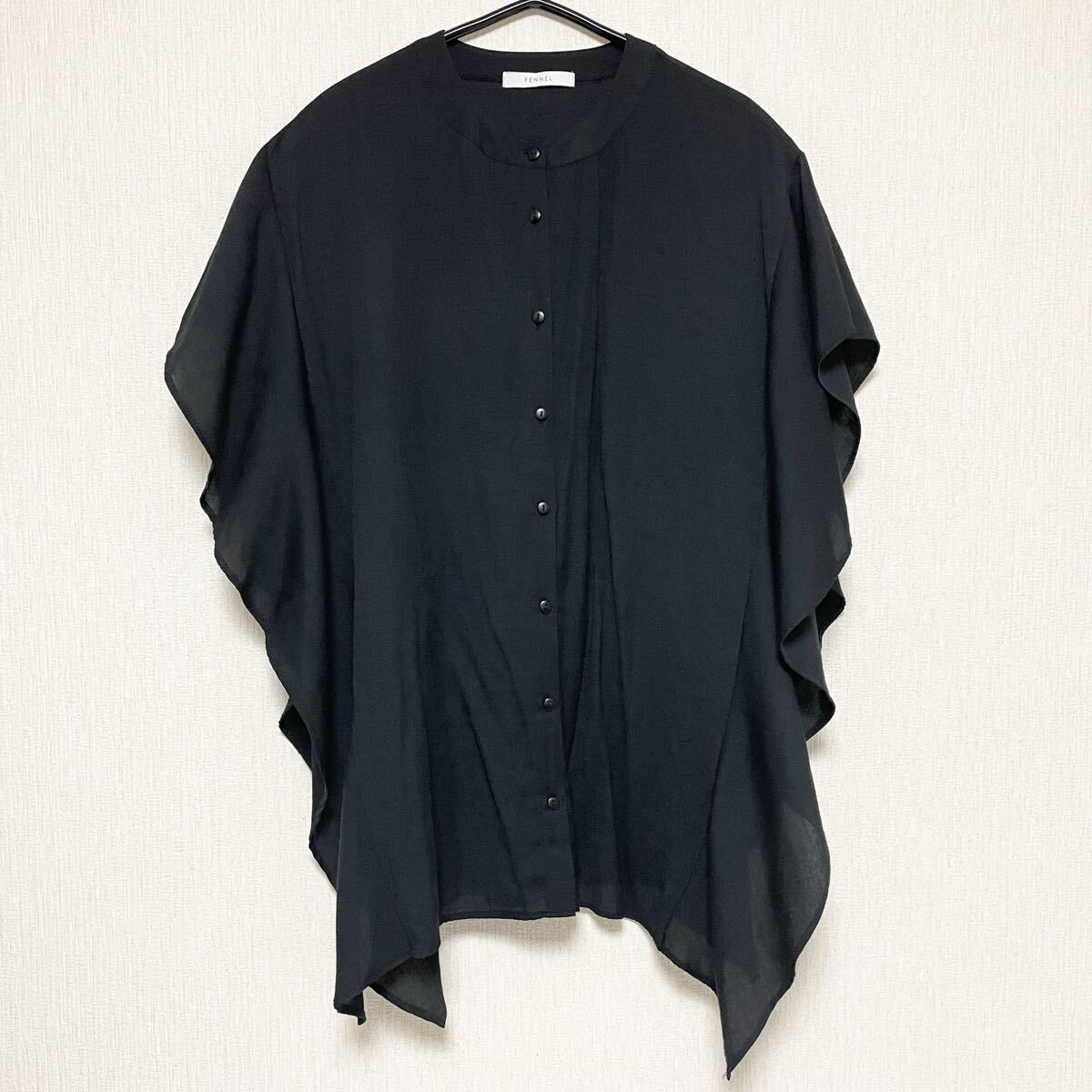 即決☆FENNEL フェンネル サイド フリル リネンライク 麻ライク ブラウス シャツ ブラック 9号 M ヤマダヤ スコットクラブ