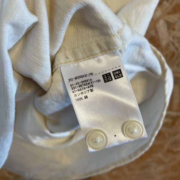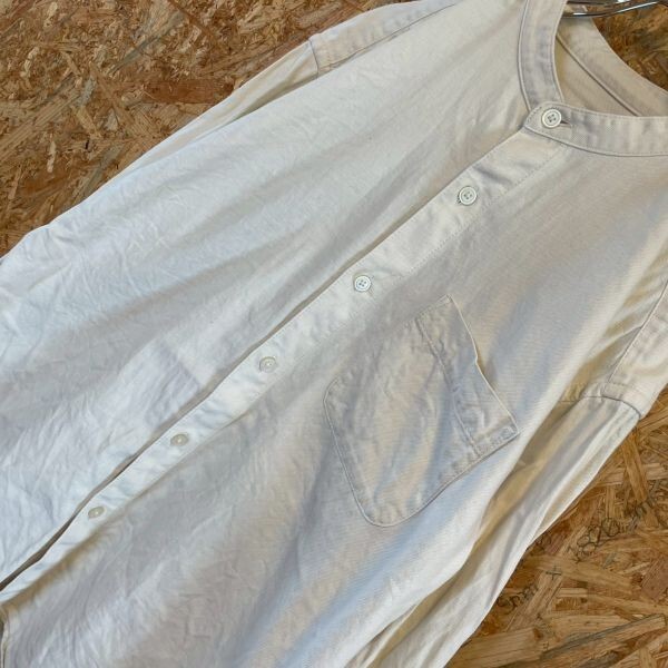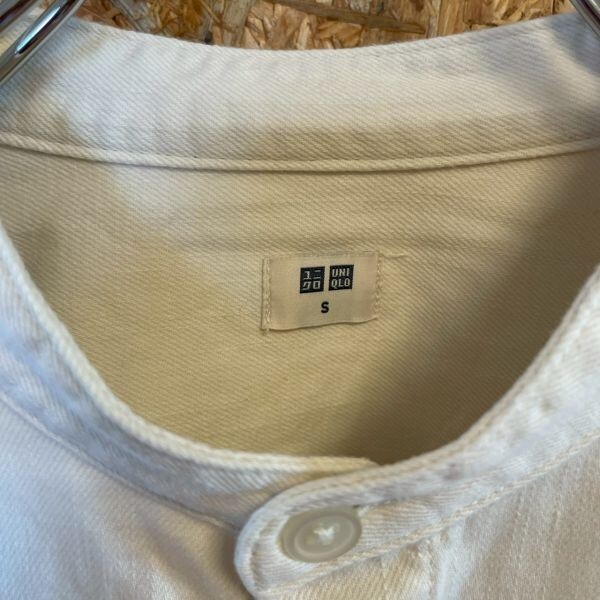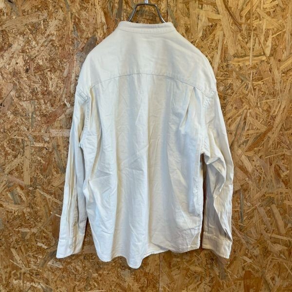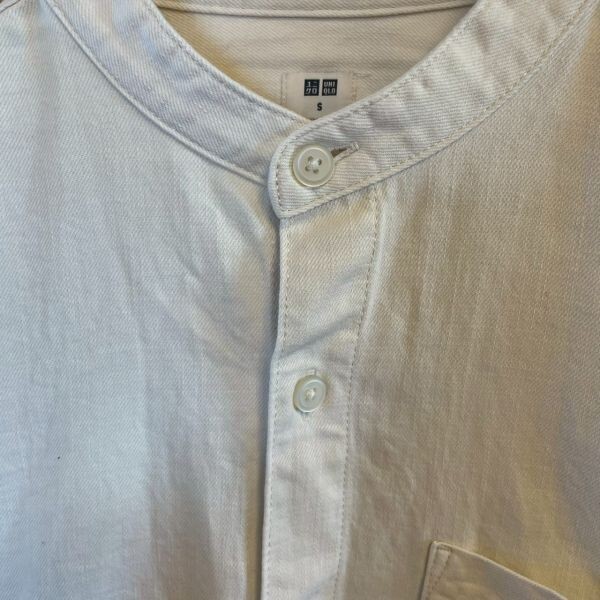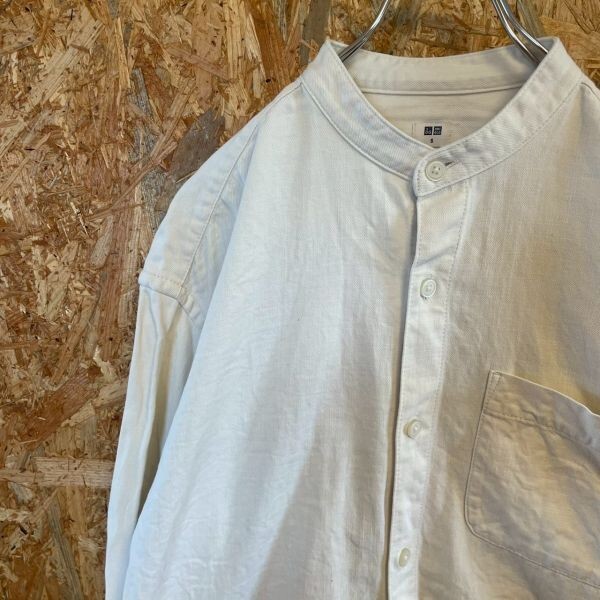 [KWT6182] UNIQLO ノーカラー長袖シャツ メンズ オフホワイト S ポス