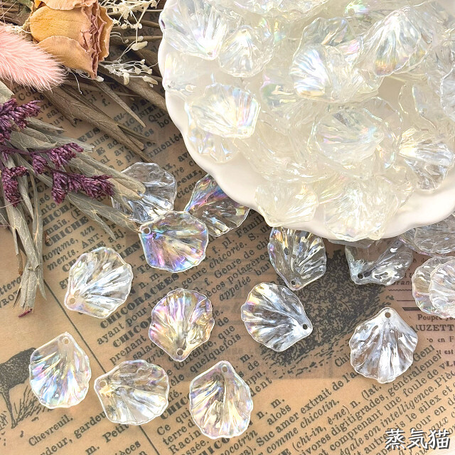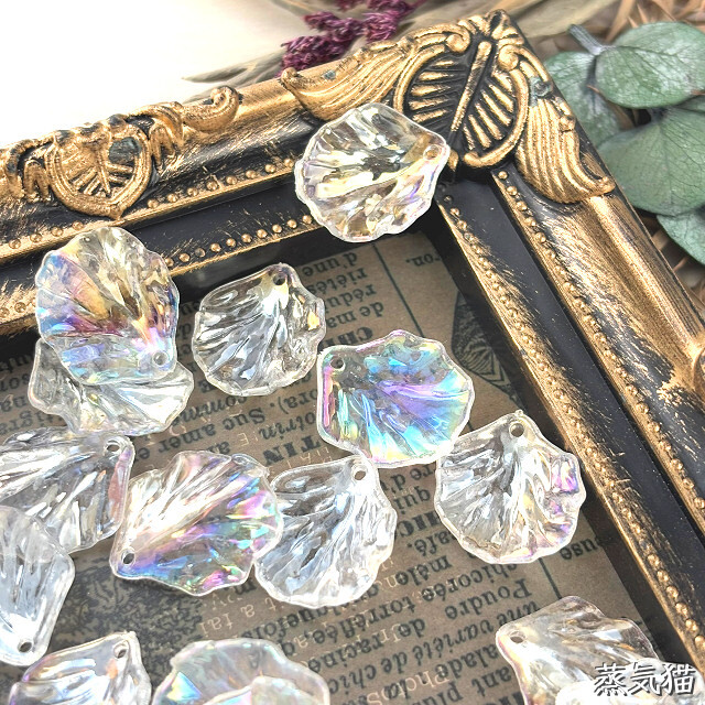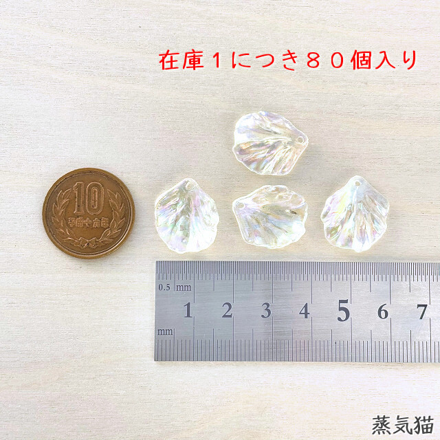 b9425 虹色の花びらビーズ クリアオーロラ 80個【フラワー 貝殻 ピアス イヤリング チャーム ハンドメイド アクセサリー素材】蒸気猫パーツ