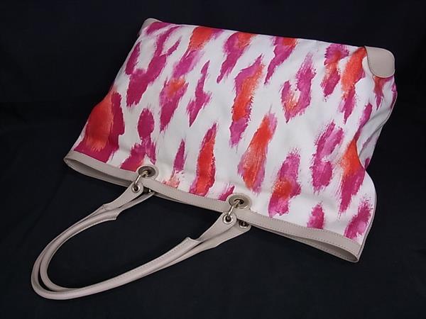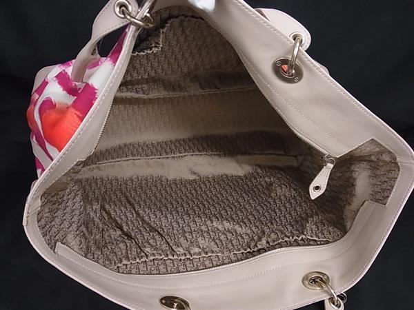 1円 ChristianDior クリスチャンディオール カナージュ キャンバス×レザー トートバッグ ショルダー アイボリー系×マルチカラー BL8355