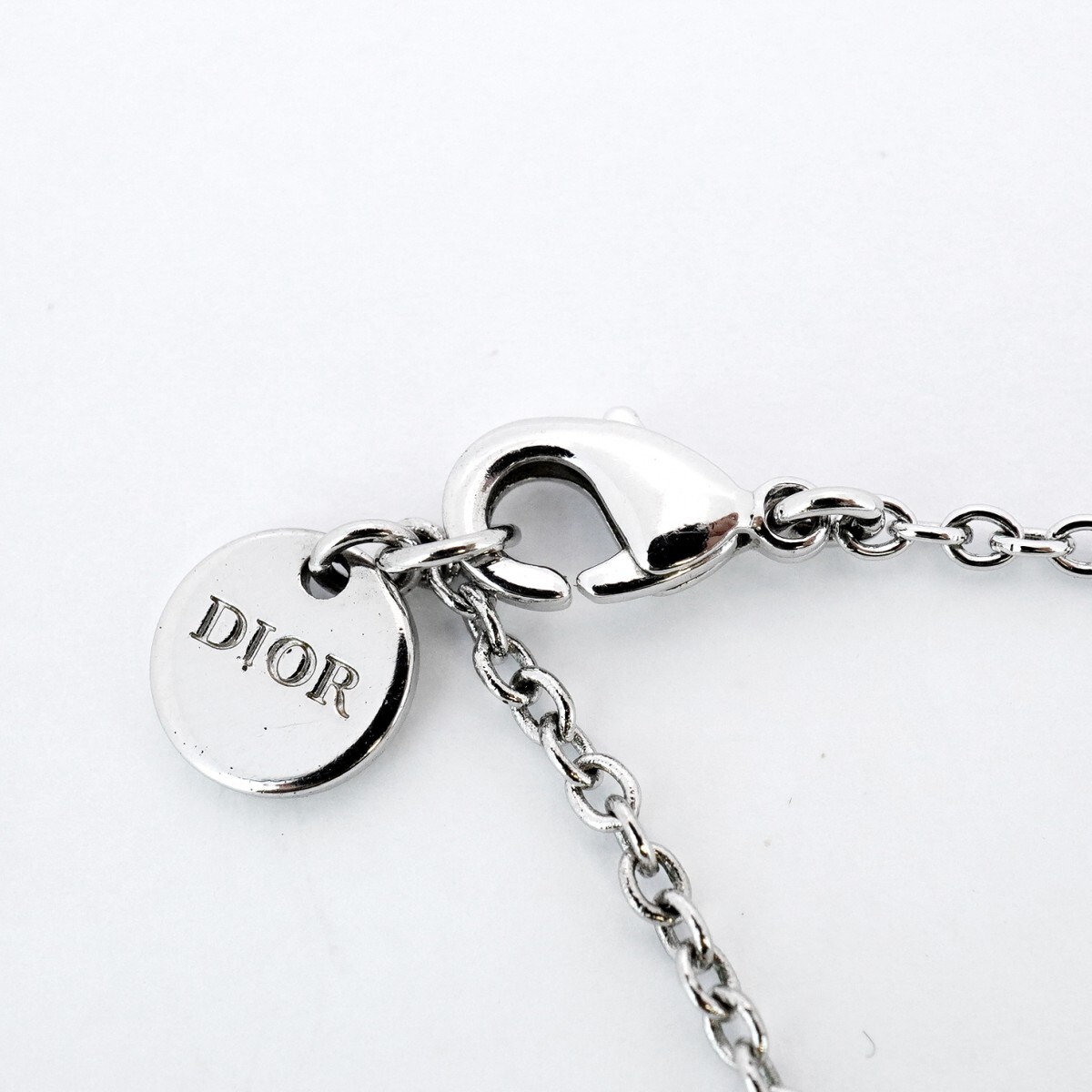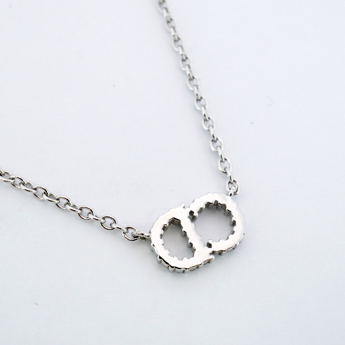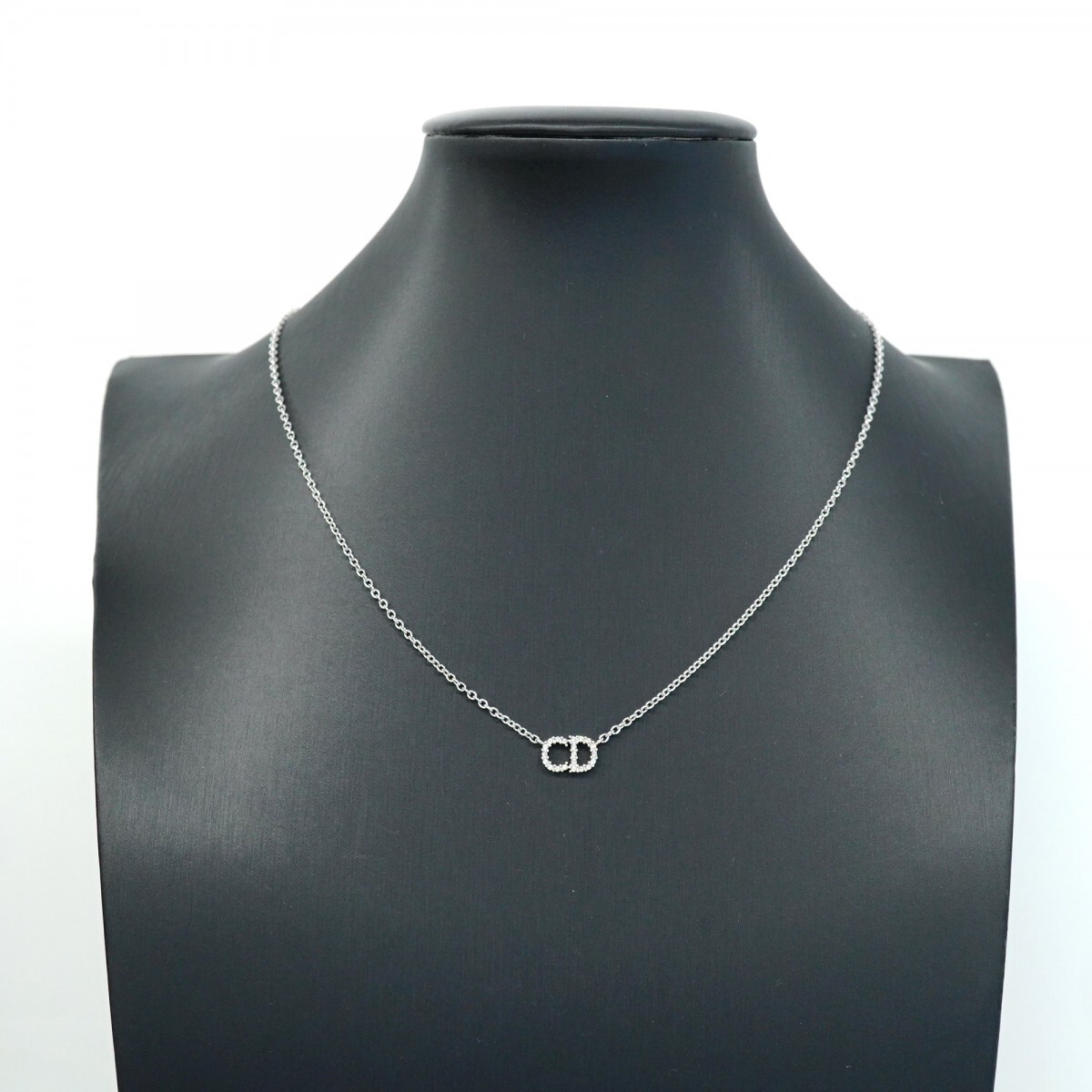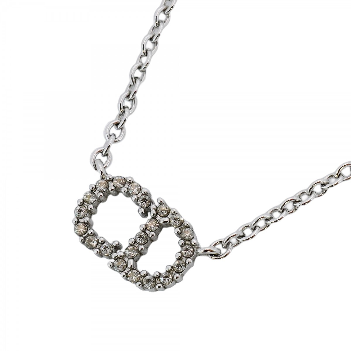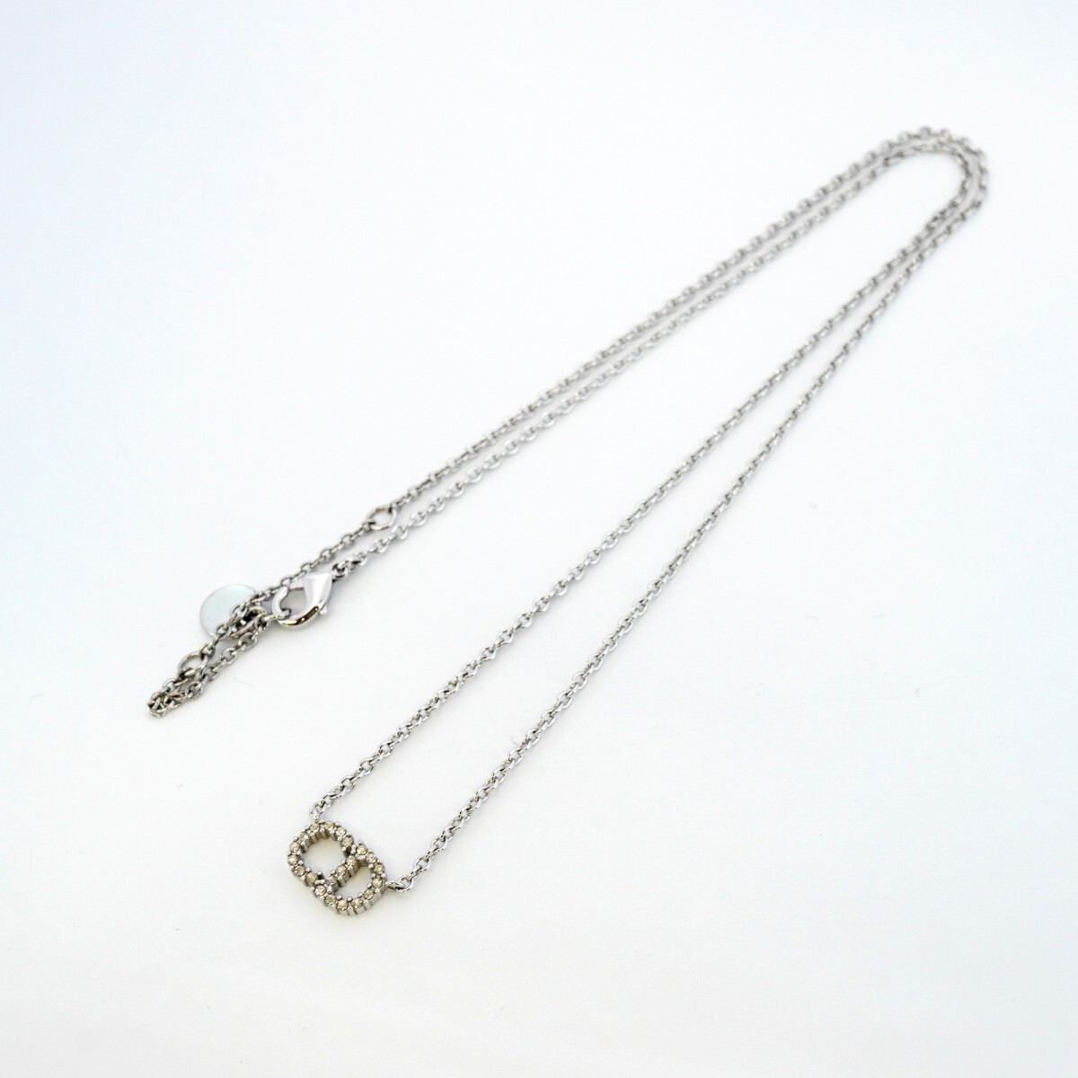 【5jgb0859】クリスチャンディオール ネックレス CDロゴ メタル ラインストーン シルバー【中古】レディース