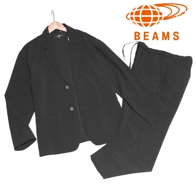 新品! BEAMS HEART 2B カジュアル セットアップ イージー スーツ ブラック (M) ☆ ビームスハート メンズ ジャケット マットウース 黒系★