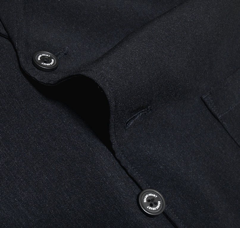 ◎ジャケットはフロントボタンは2つ、左右にポケットがあります。バックスタイルはノーベントとなります。裏地なし。