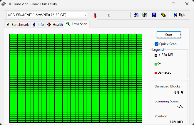 ・HDD不良セクタ:無し(HD TUNE Quick Scan)