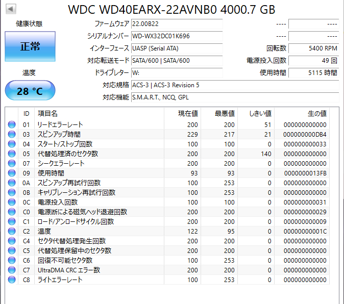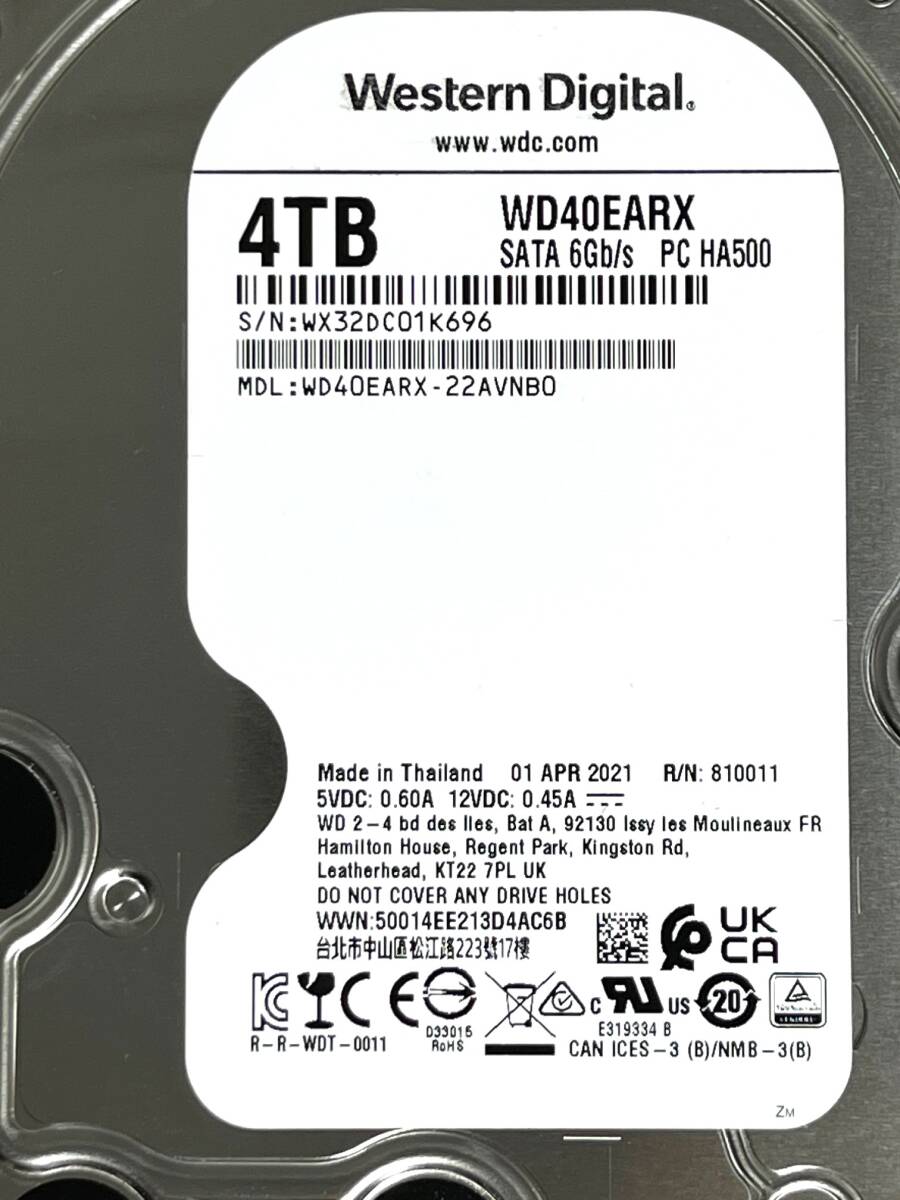 ★ 4TB ★【使用時間:5115h】 Western Digital / WD40EARX 2021年製 良品 3.5インチ内蔵 HDD WD [管理■58K6]