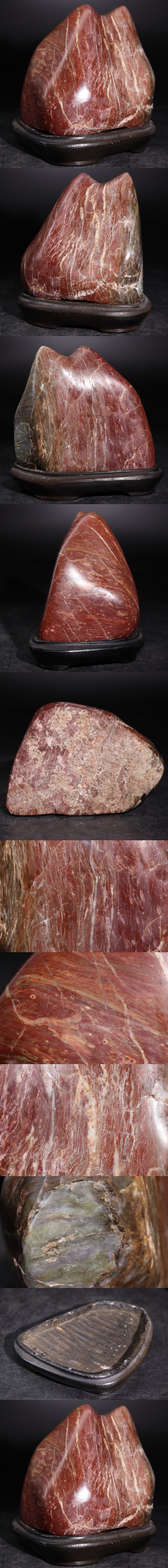 | 時代 砡 鑑賞石 唐木 台座 / 中国美術 石工芸 天然石 置物 煎茶飾 検索: 赤石 孔雀石 赤 虎石 .G2297 |