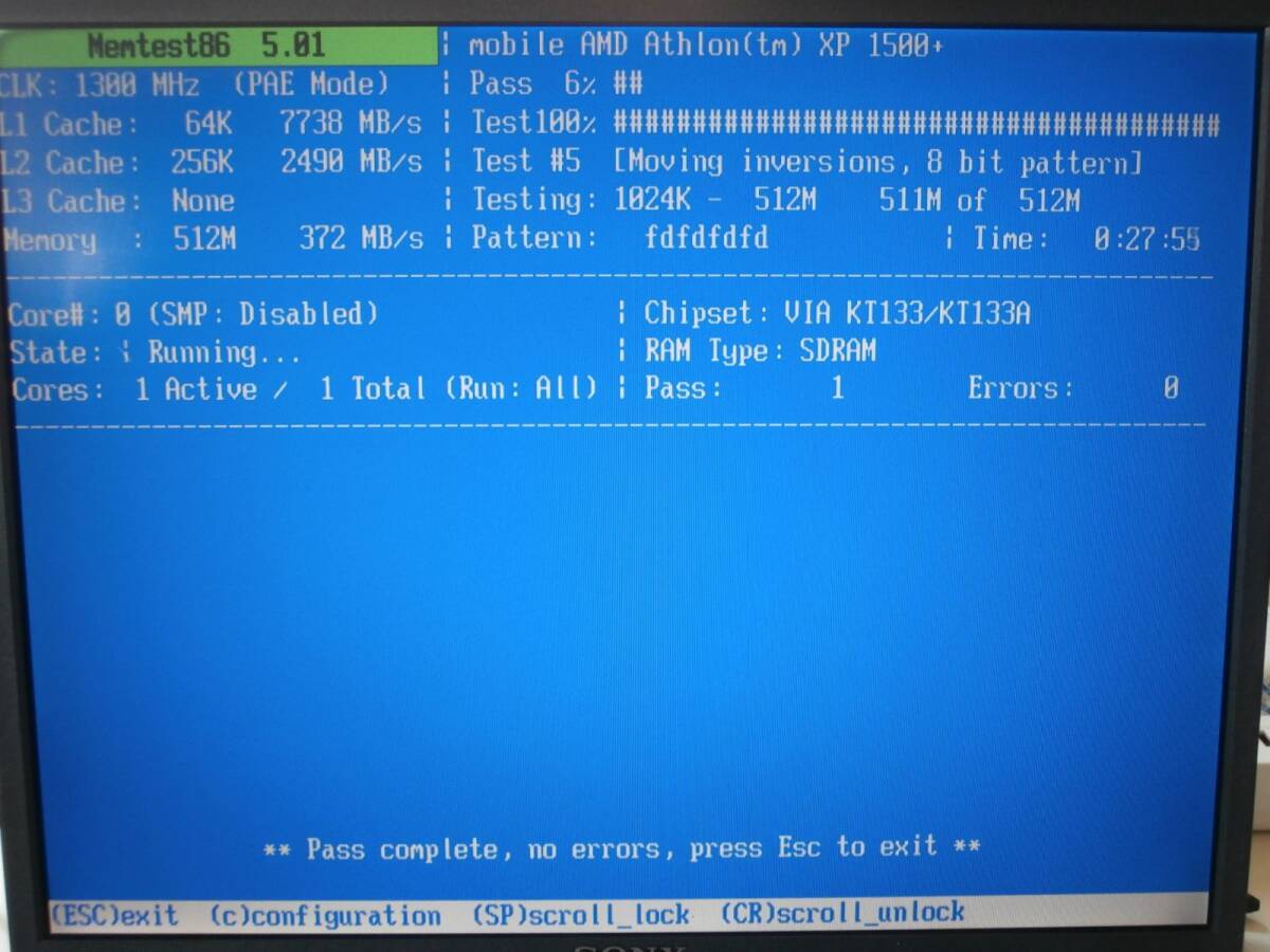 BIOS画面で認識、memtest 1pass エラー無し程度の確認のみです。