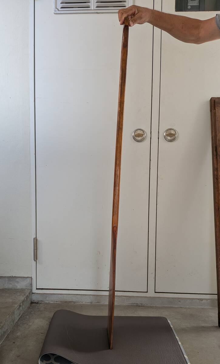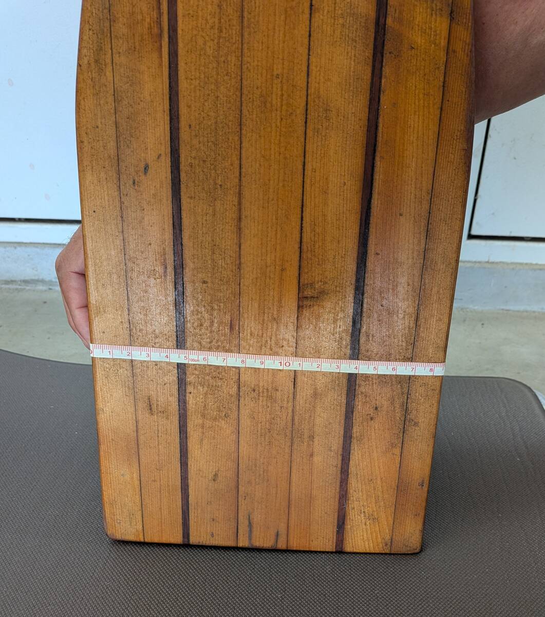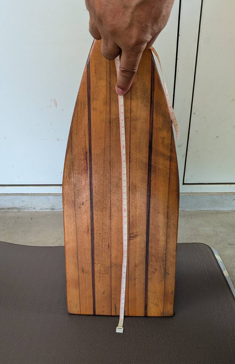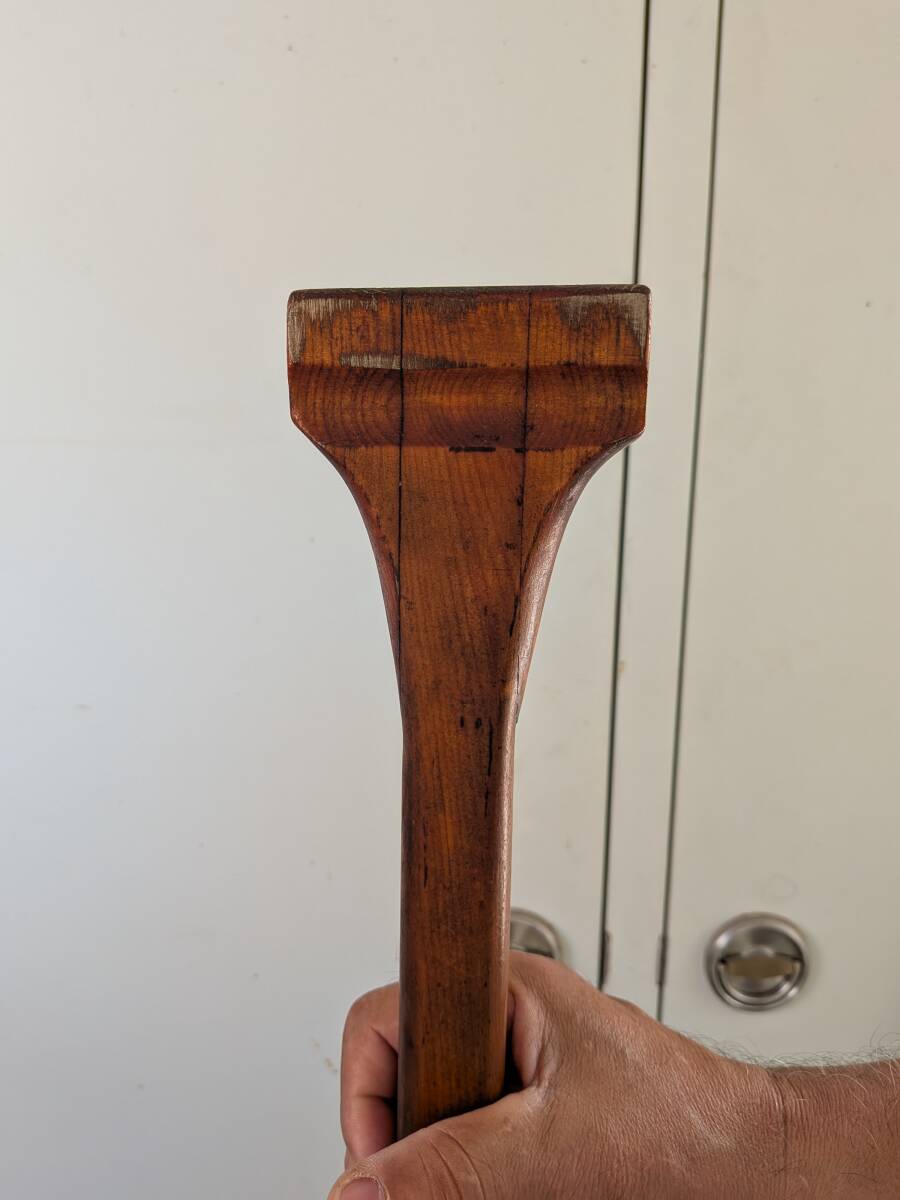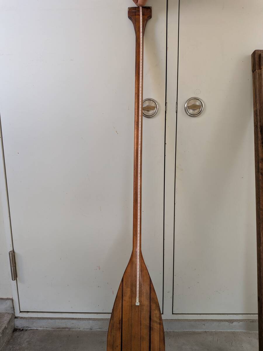 40年位前に作ったオリジナルカヌーパドルです。材質は米ヒバ材とアクセントにローズウッドになります、長さ約137㎝幅約19cmです長年の汚れと傷塗装のはげなどもあります。狩猟で沼での鴨撃ちなどで使用してました。オブジェなどでいかがですか。NC NRです