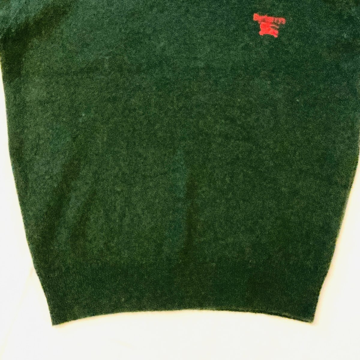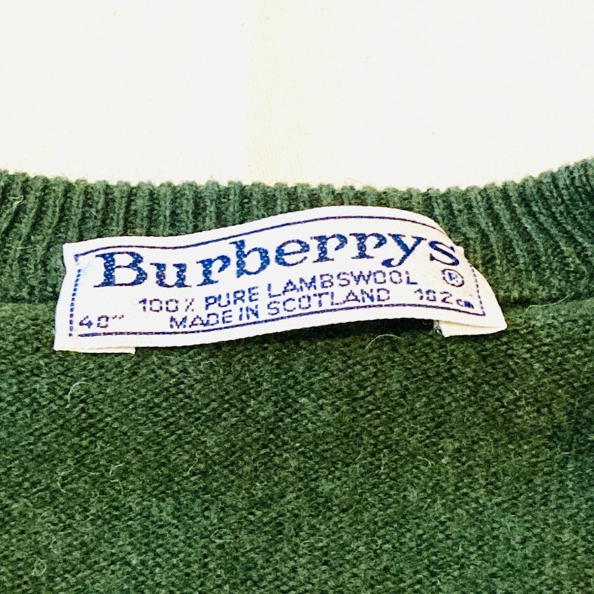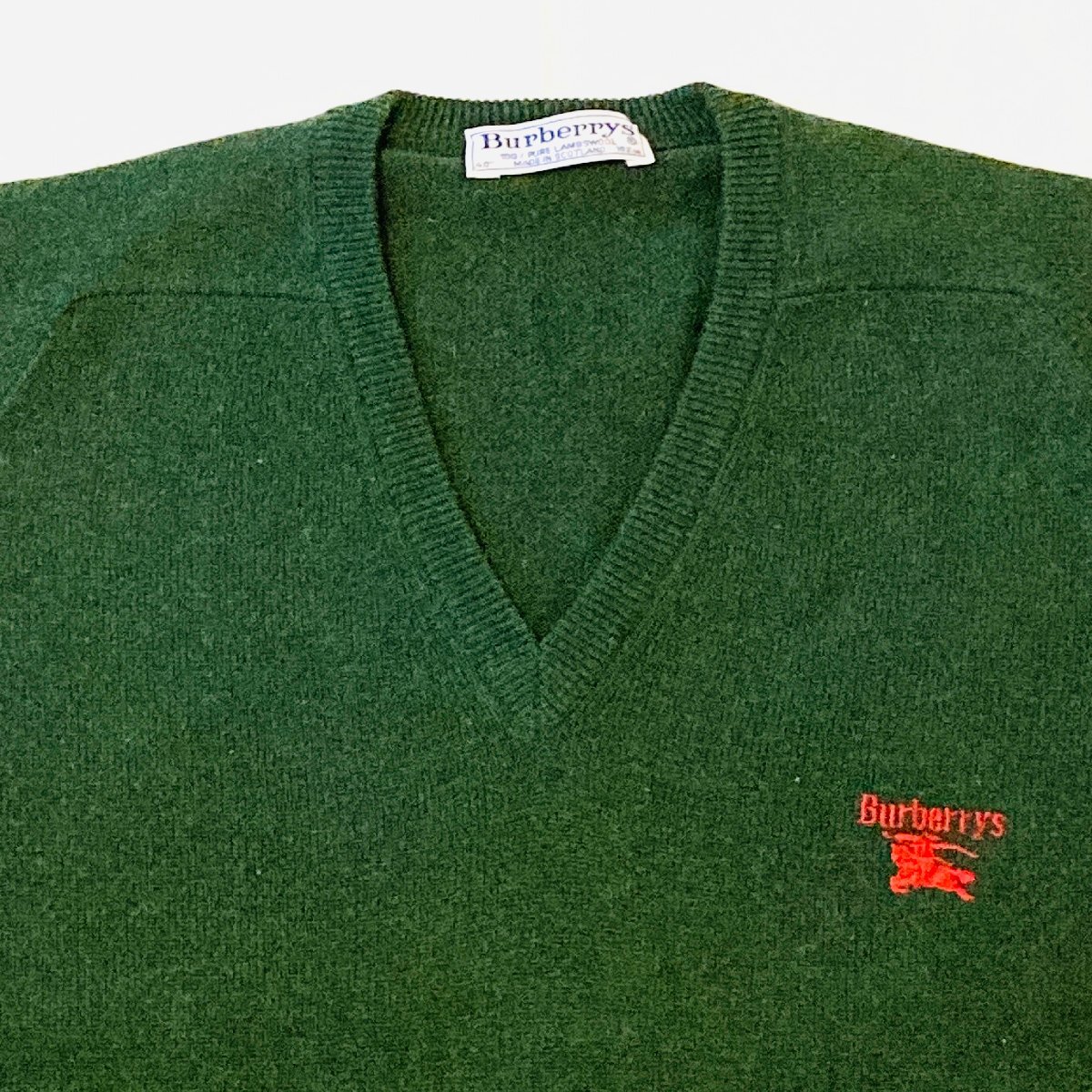 美品 Burberrys 英国製 ロゴ 刺繍 Vネック ニット セーター グリーン/緑系