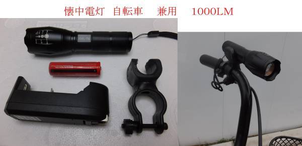 送料無料 匿名 LED 懐中電灯 自転車用 兼用 1000LM 充電池付 4ヶ月保証