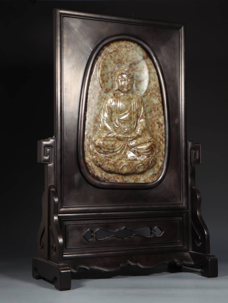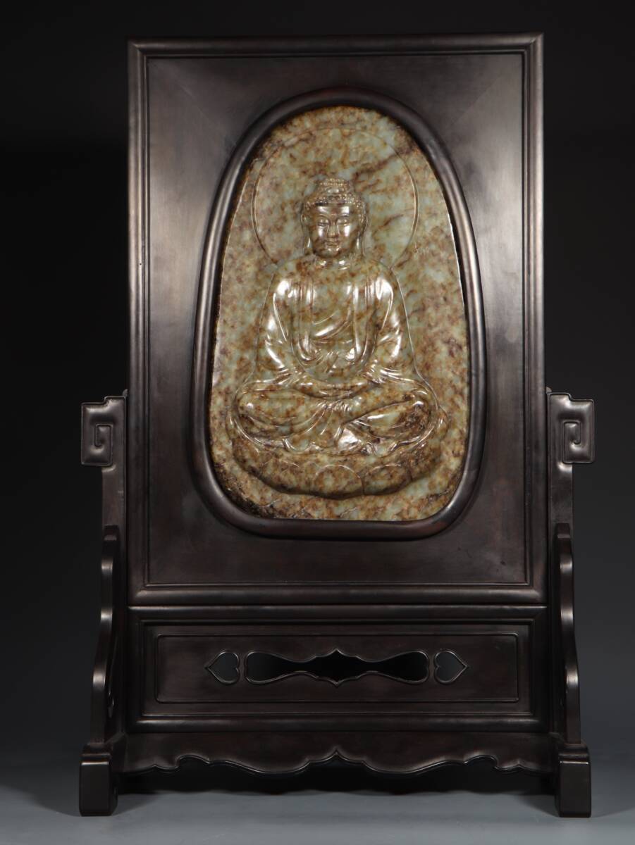 | 和田玉 人間国宝【和田玉釈伽牟尼仏詩文挿屏置物】 中国古玩 中国骨董 伝世珍品 風水秘蔵 傳世家珍 收藏品 置物 | |||