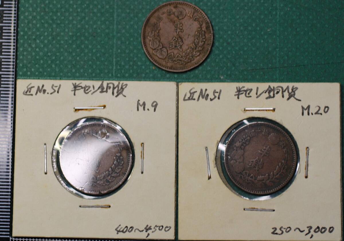 ◆背龍紋◆半銭銅貨◆明治9年・明治15年・明治20年◆3枚まとめ売り◆古銭◆