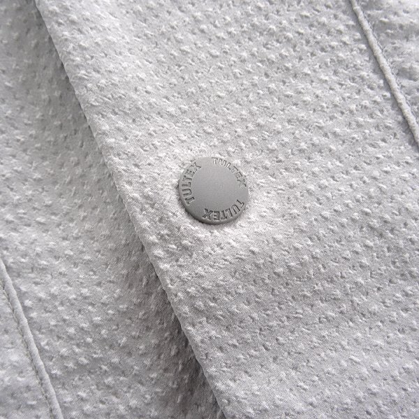 | 新品 未使用 紙タグあり Lサイズ(画像は別サイズを撮影) チェスト96~104 身長175~185 ※商品に記載されたサイズ・寸法です※ 肩幅50.5cm 身幅57cm 袖丈28.5cm 着丈73.5cm 表地:ポリエステル50% 複合繊維(ポリエステル)50% アイスグレー |