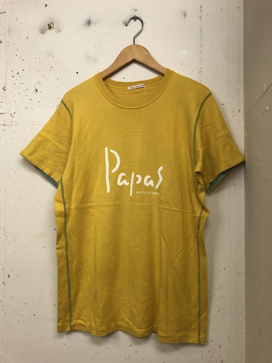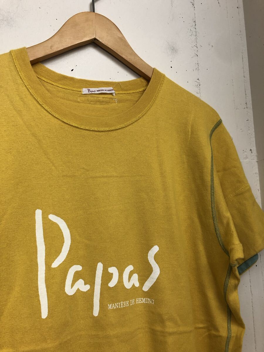 papasパパス フラットシーム 半袖tシャツ ロゴプリント 黄色 Lぐらいになります。