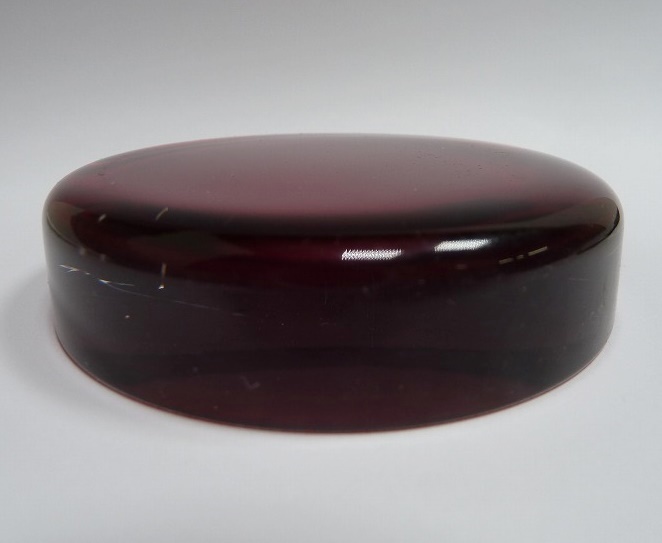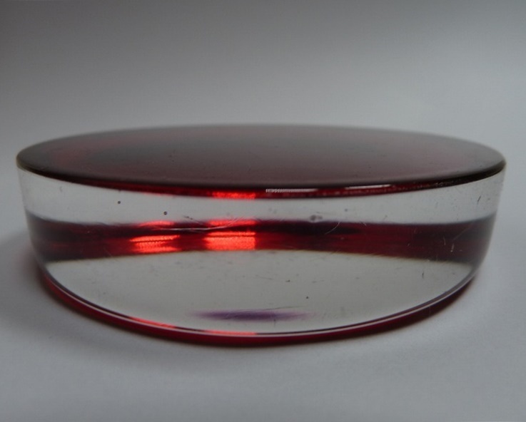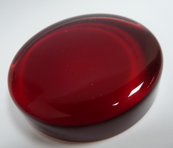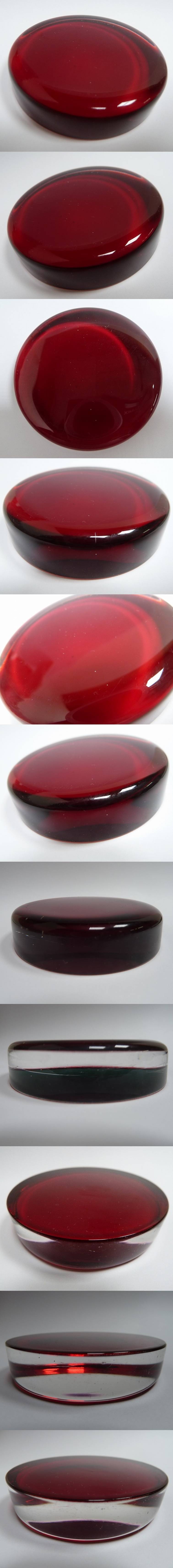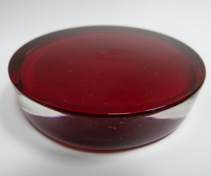 (☆BM)ガラス ペーパーウェイト/レッド 深紅①赤 丸型 円形 直径7.5㎝ サンドブラスト ベース 材料 素材 無地 ハンドクラフト アート